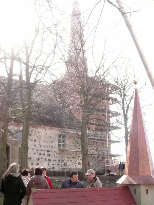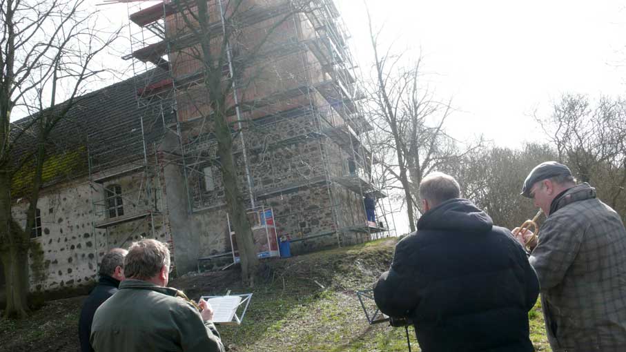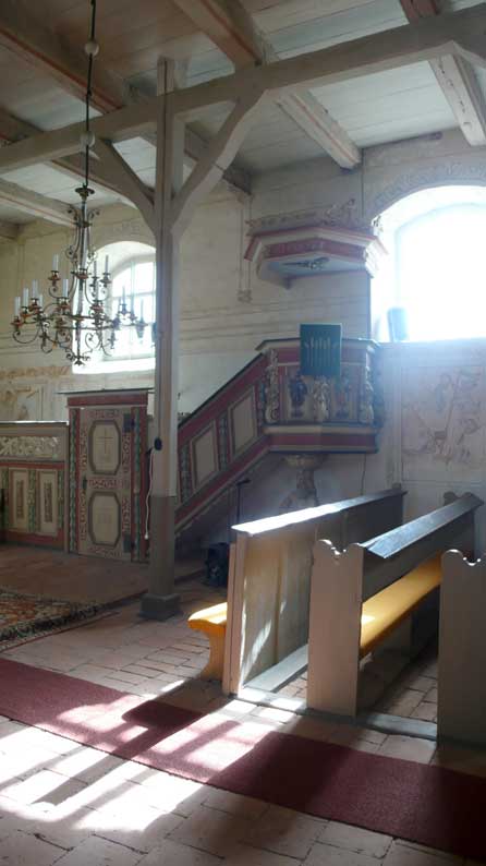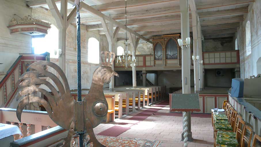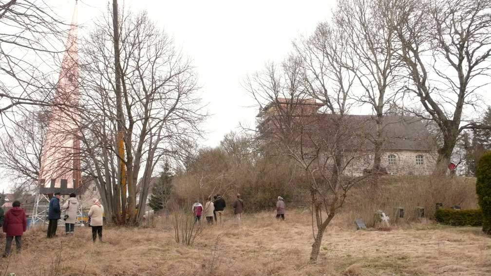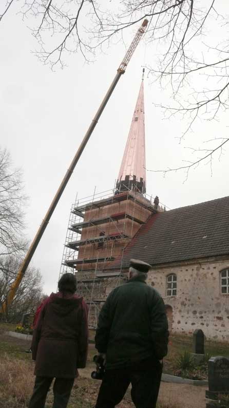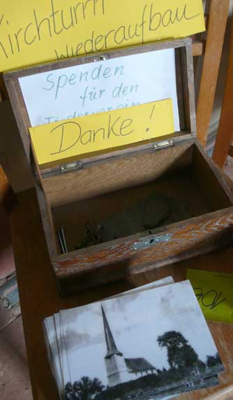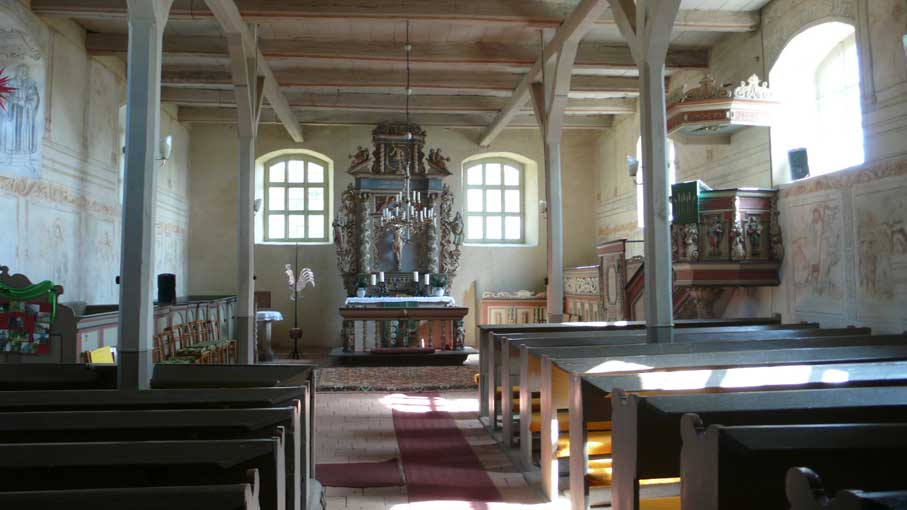 "Von unseren 448 Kirchen in Pommern sind ein knappes Viertel Patronatskirchen. Patronatskirchen sind Kirchen für die der preussische König Baulasten übernommen hatte, die jetzt vom Land M-V getragen werden. Dies Kirchen sind genau bestimmt und wir bekommen für sie jährliche Zahlungen vom Land. Ich glaube nicht, dass Nossendorf dazu gehört, lasse das aber prüfen."
