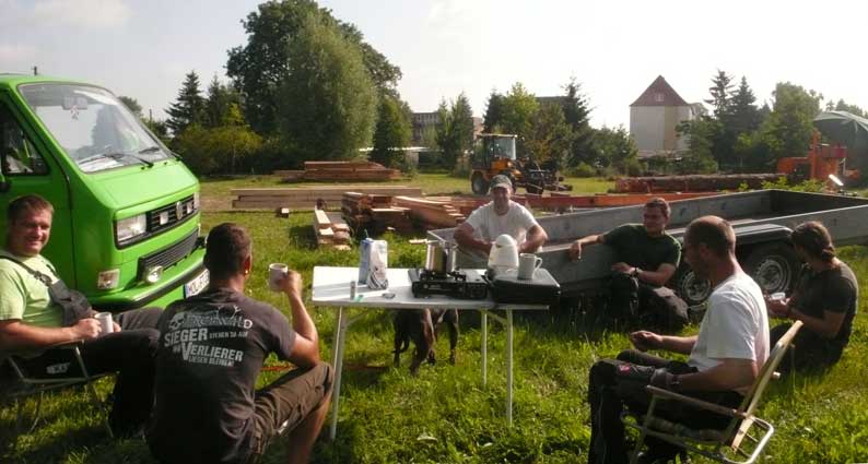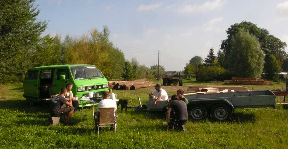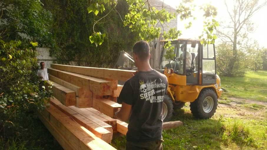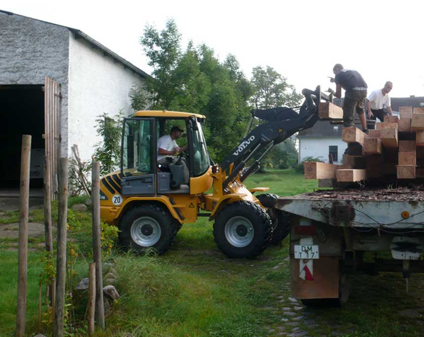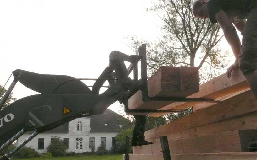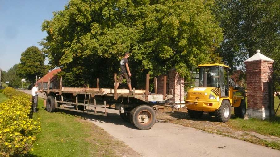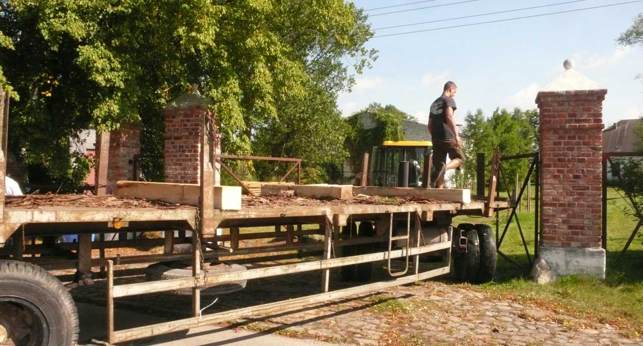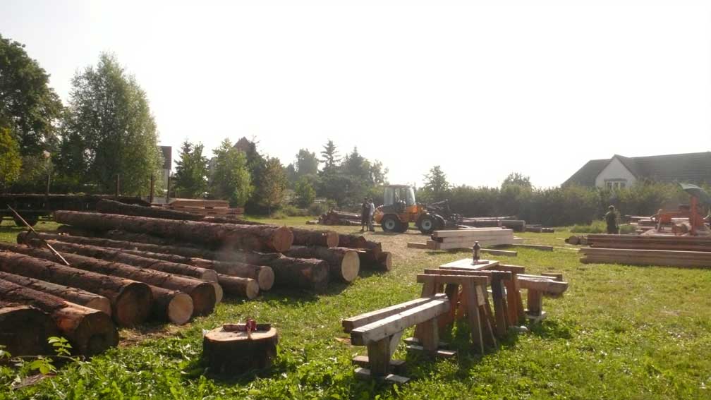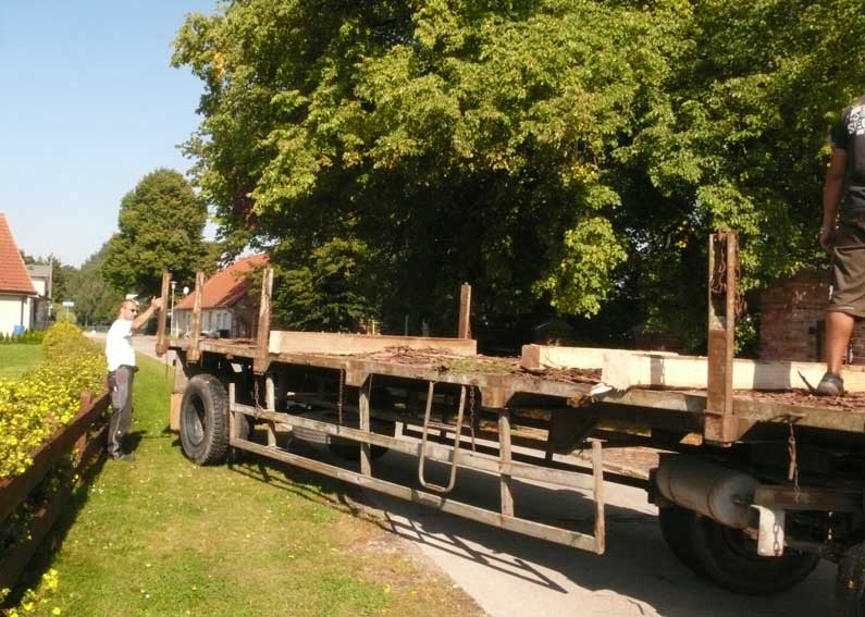seit dem Beginn der Turmarbeiten fahren sie wieder durchs Dorf - die Fahrzeuge mit den toten Bäumen