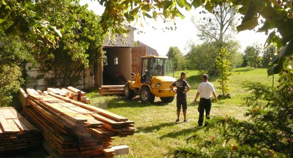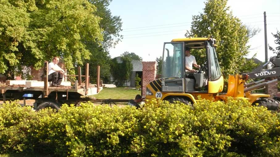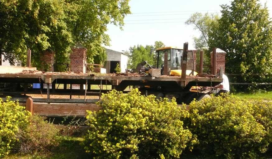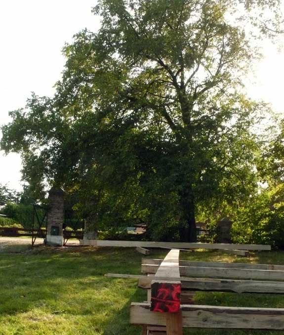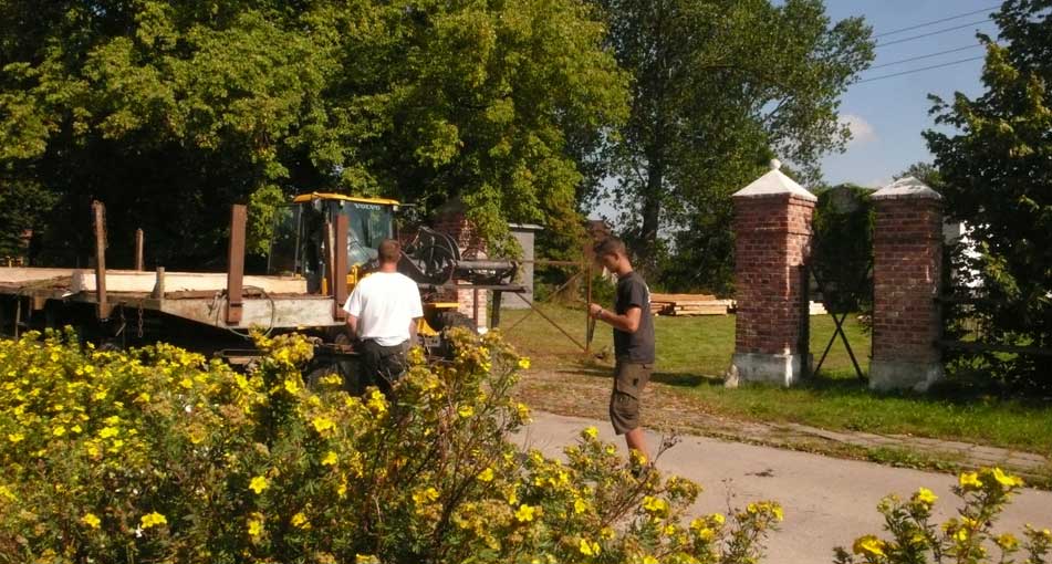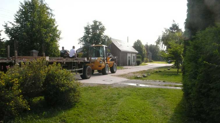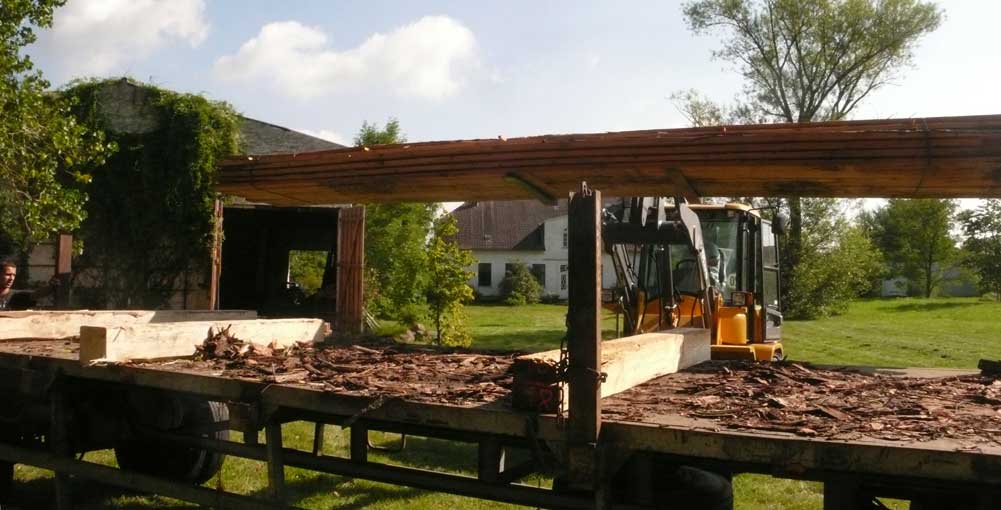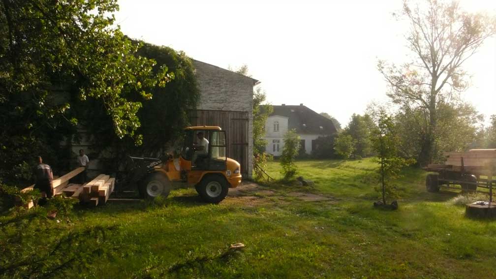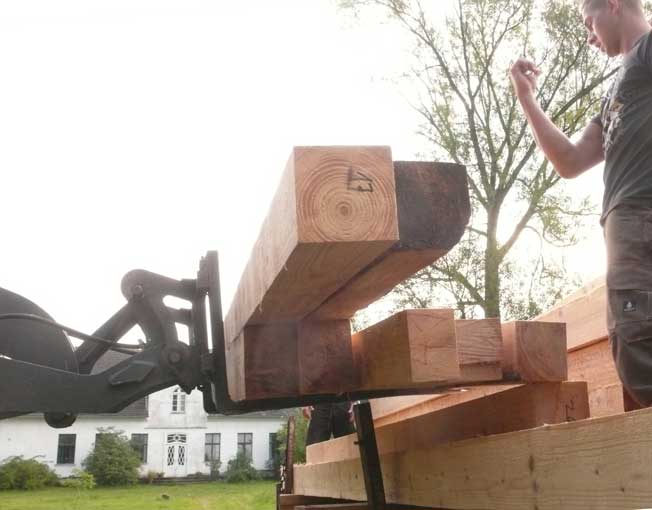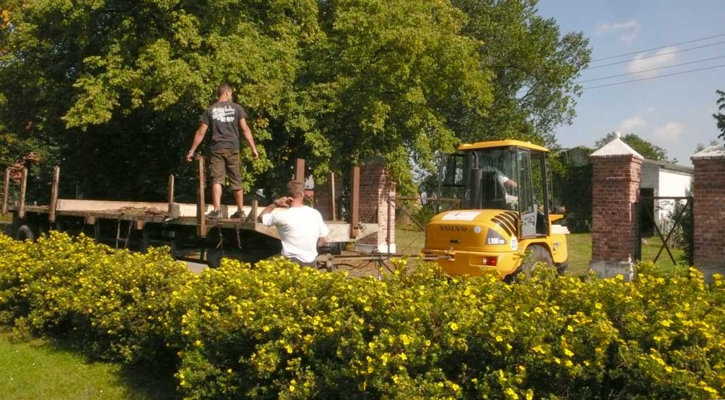 seit dem Beginn der Turmarbeiten fahren sie wieder durchs Dorf - die Fahrzeuge mit den toten Bäumen