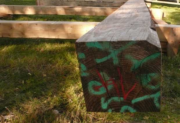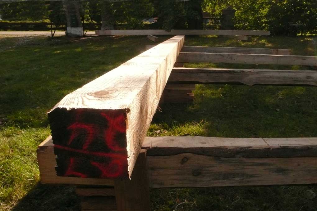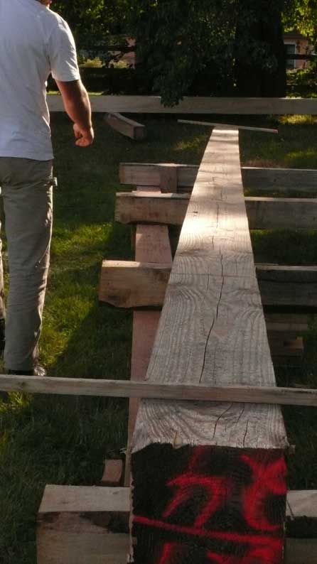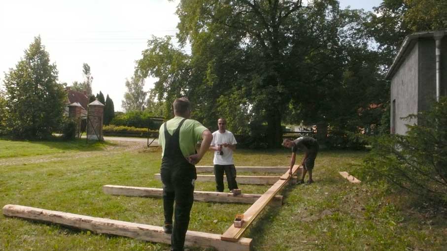 der erste Balken ist der Stil, einer der 4 Ecken unter der Spitze - aus dem Wald in Medrow/Nossendorf gestiftet von Jochen Barth und N. Henke, von unseren Feldern