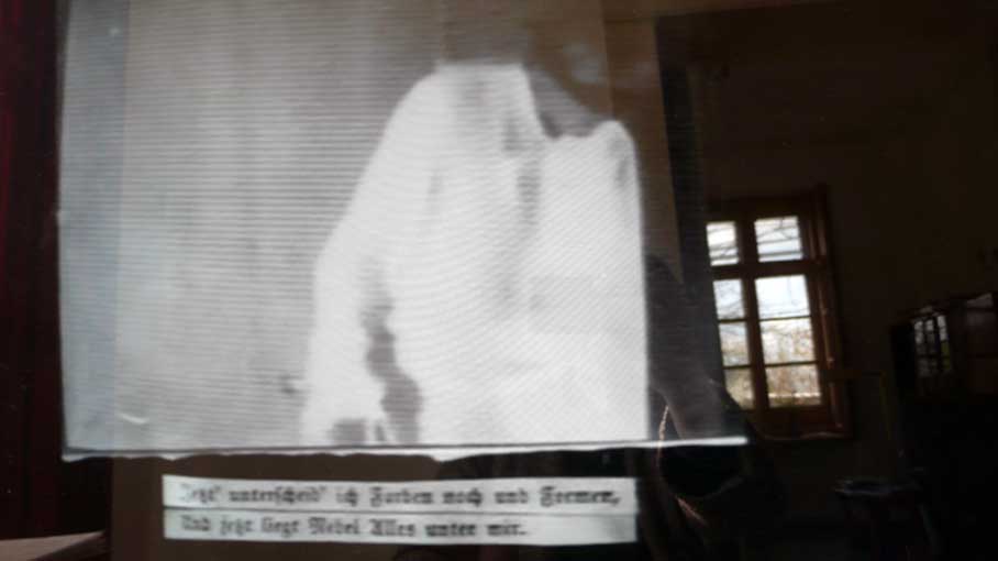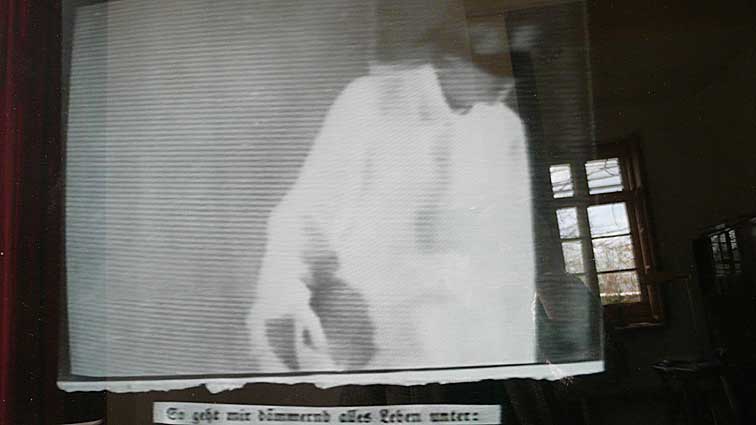 In der Zeit zwischen dem Fall der Mauer und der Wiederkehr nach Nossendorf, dem Ort der Geburt lagen 10 Jahre . Warum. Nach der Agonie des Abschieds von der Bühne des Filme-Machens für den Markt und des Theaters und der Bücher-des Schreibens lagen noch der Auftritt mit Nietzsche in Weimar und auf der documenta X (1997 in Kassel und Berln im Hamburger Bahnhof dem Museum der Moderne)als Höhle der Erinnerungen. Dort mit den letzten Dingen Oskar Werners.