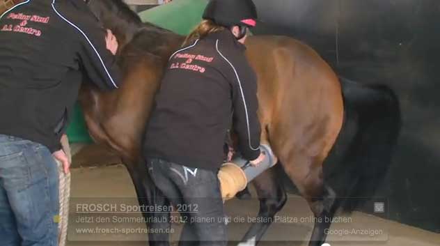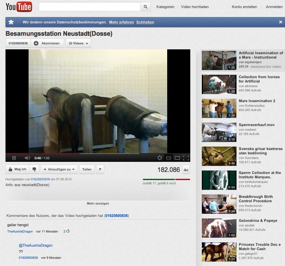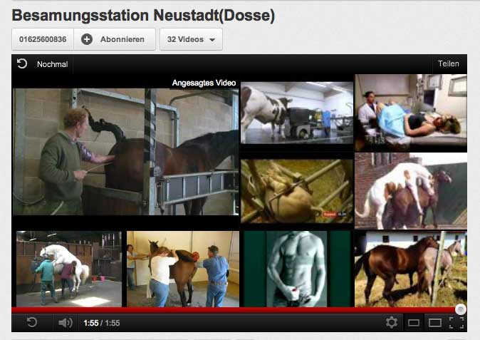 auf dem beigefügten Clip wird der Hengstsprung auf einer Atrappe vorgeführt, nachdem er bei einer Stute und ihrer Rossigkeit Mass genommen. Das Absamen, wie der Kommentator sagt, unter dem Gelächter der Kinder. Daraus entstehen dann die prominenten und teuersten Stars unserer internationalen Pferde-Shows des Reitsports bis zur Olympiade. An ihnen sehen wir , wie wir uns verstehen.