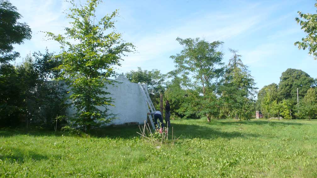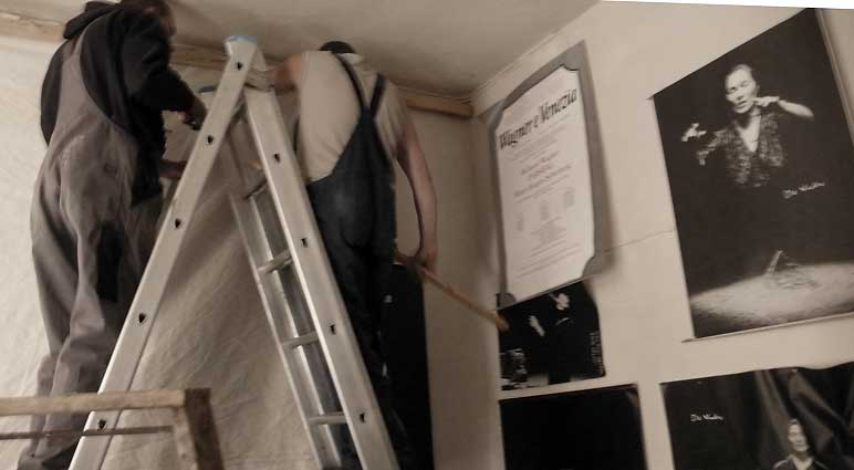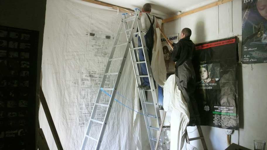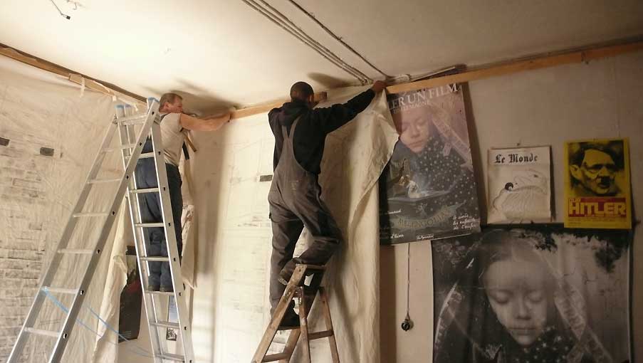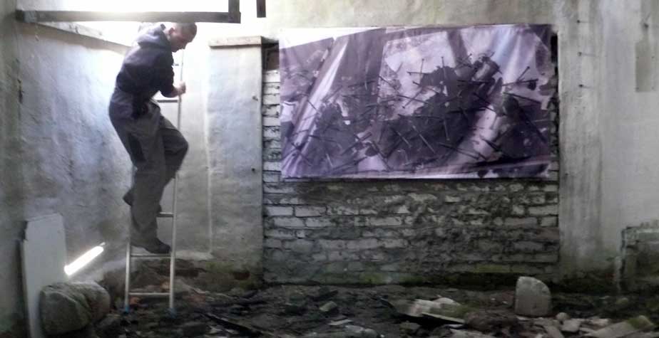 in dem Bunker von Nossendorf die Präperierung der Wände für die Candide-Projektion aus Berlon