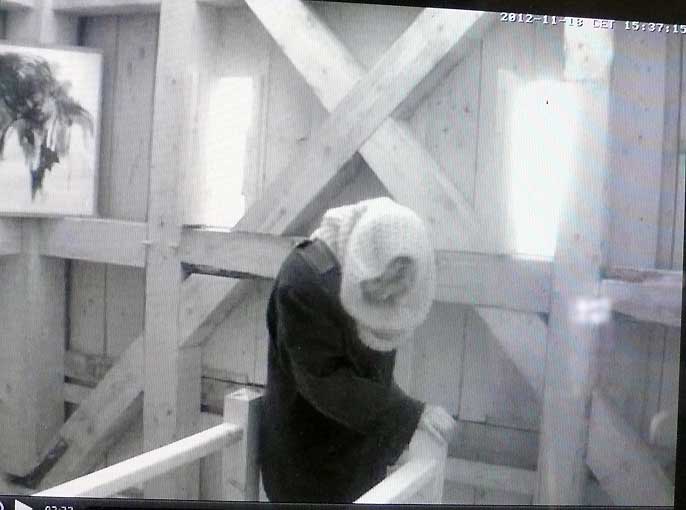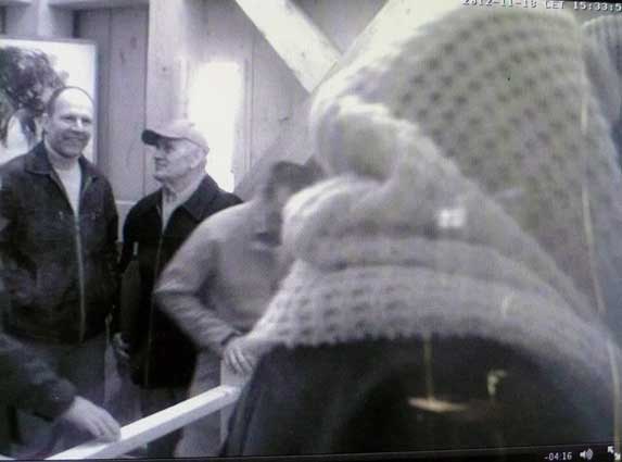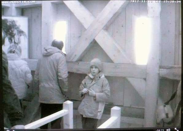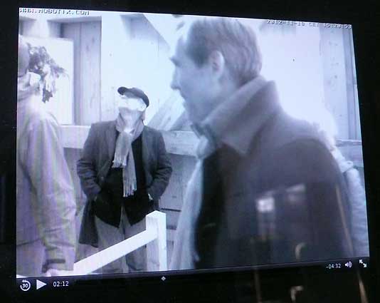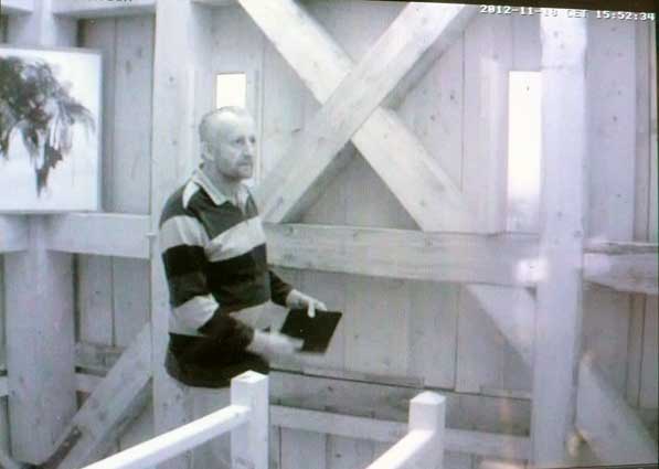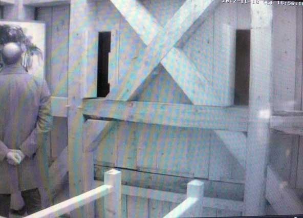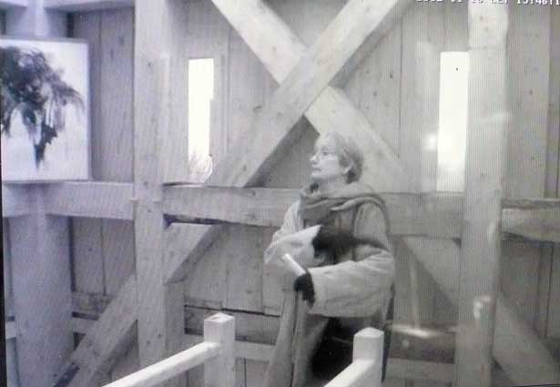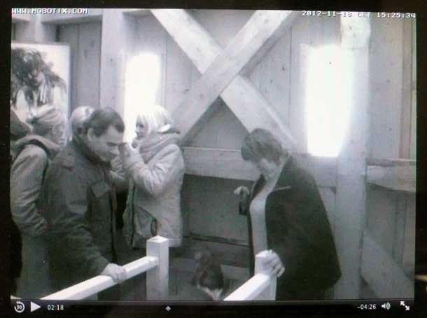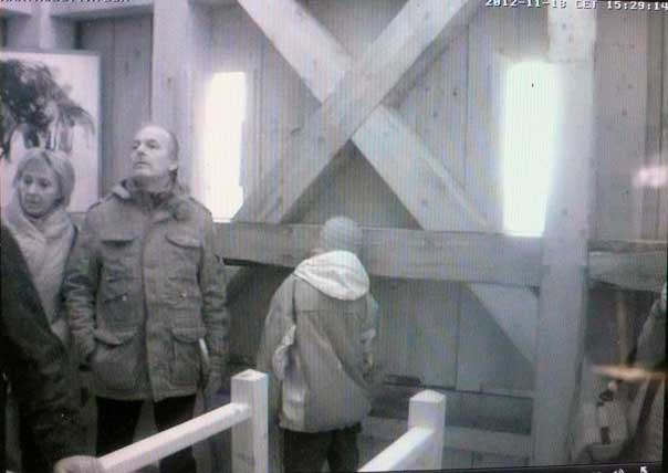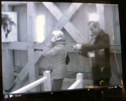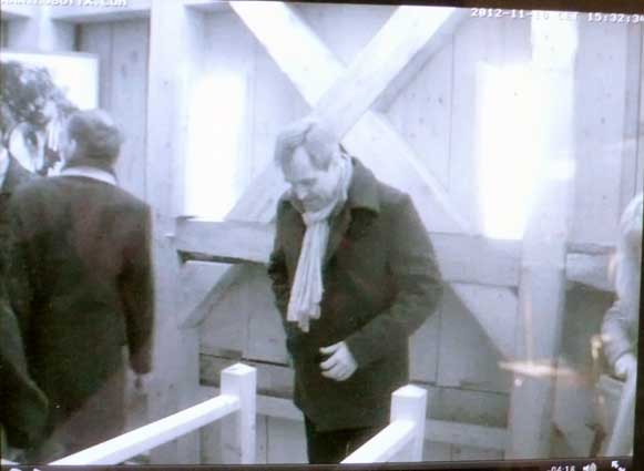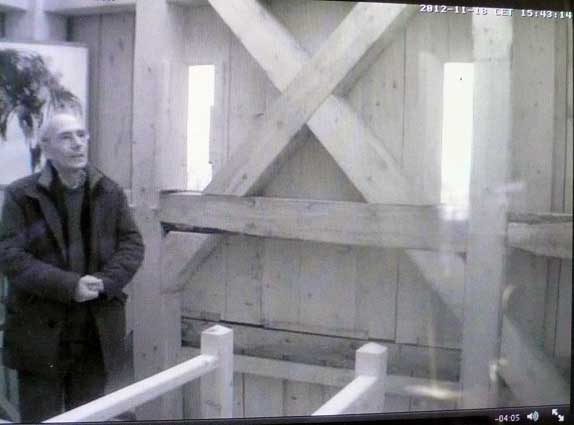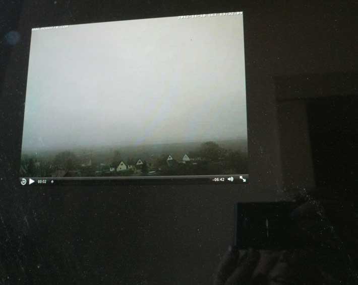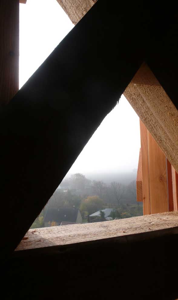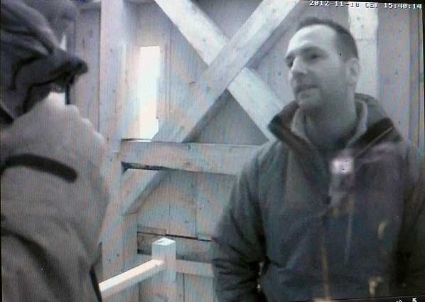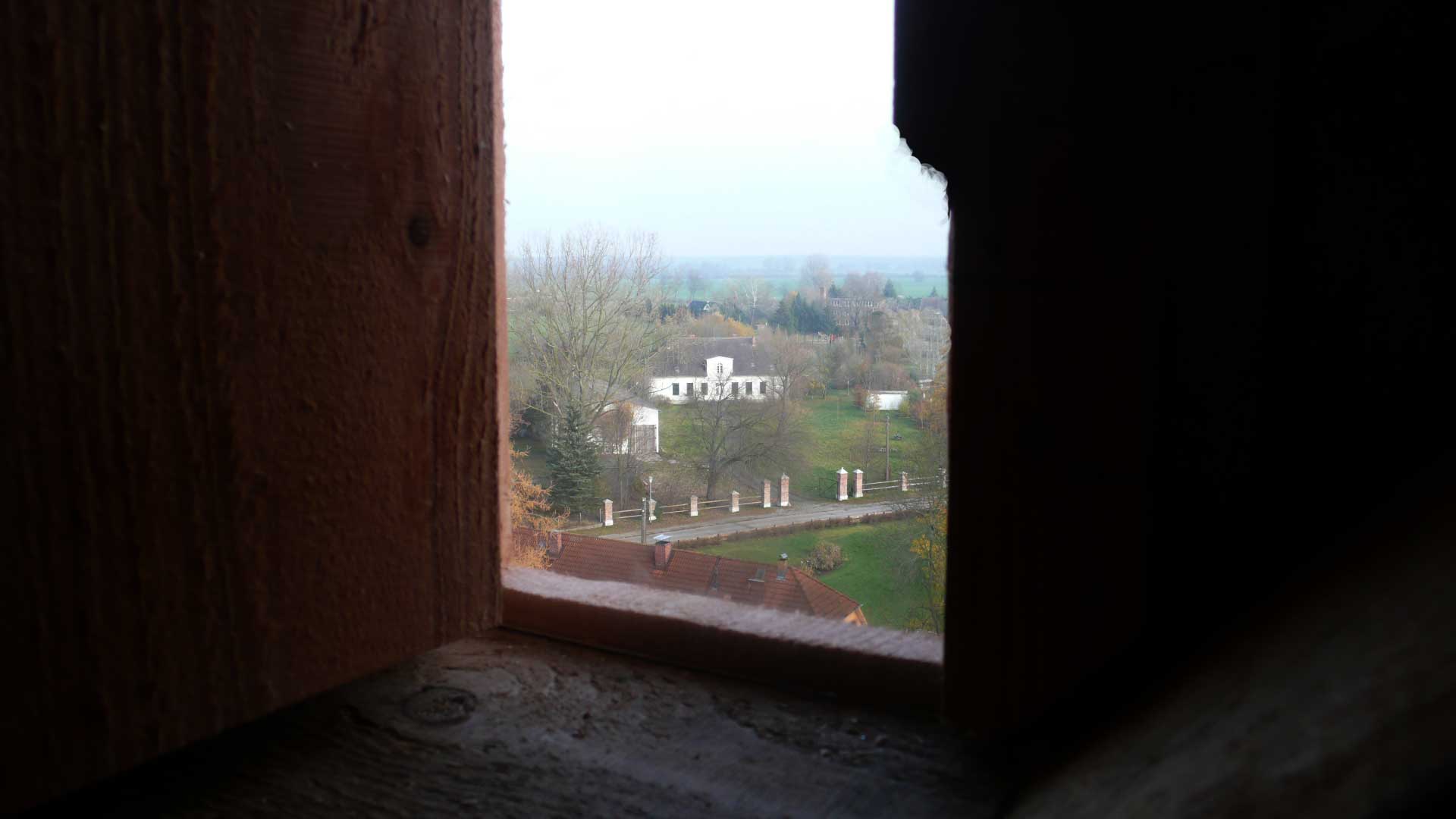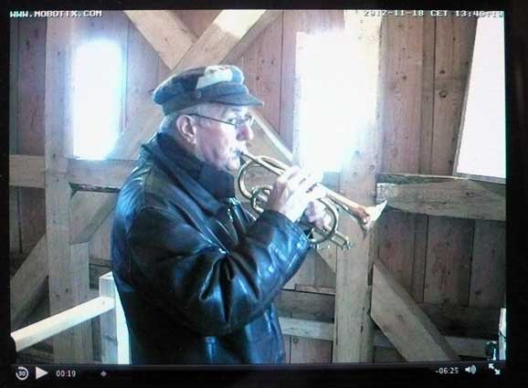 Die Turmkamera am Einweihungs-Sonntag mit einsamem Tromper vor vergessenem Fenster-zu öffnen gross ins Dorf.