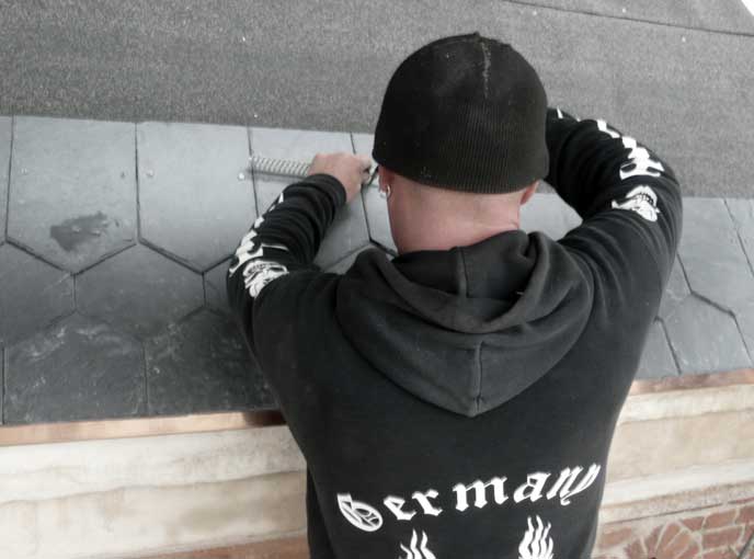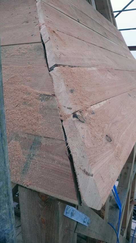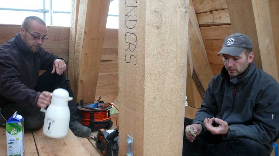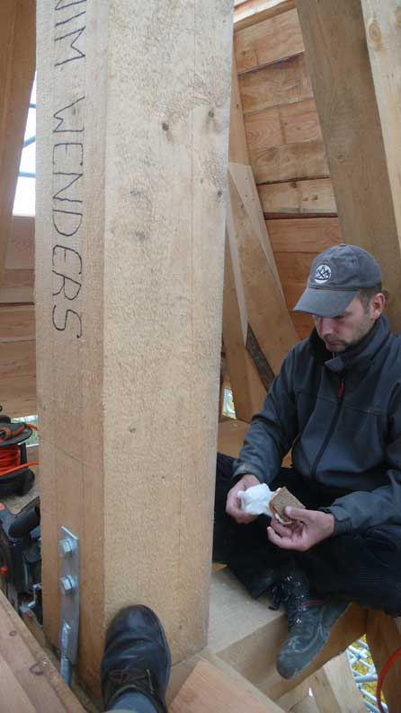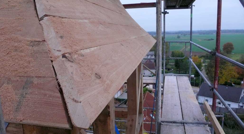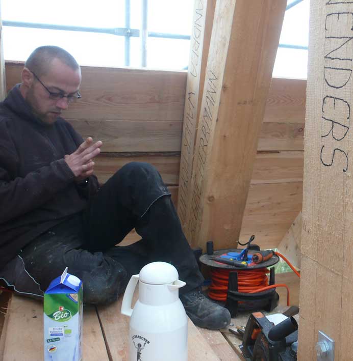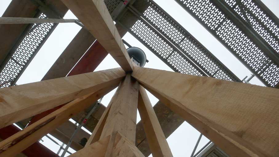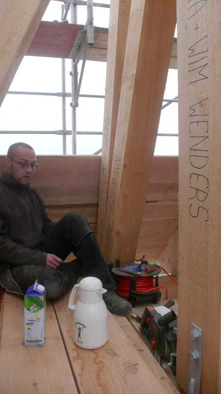 die nun die Verschalung des Turms machen.