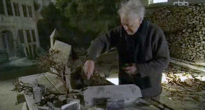 Warum aber Nossendorf und Preussen zusammen. Als letztes Kapitel der Geschichte - oder Anfang eines Preussen aus dem Geiste jenes Urbar-Machens dessen, was aufgegeben, aus dem Nichts im Stil des Notwendigen und sonst nichts. So müssten auch die Filme des Lebens, der bayerische Ludwig, des Sachsen Karl May und des österreichischen Führers und Wagners Parsifal als preussische Filme und nicht deutsche, sondern preussische Trilogie heissen, wegen jener Karggheit aus dem Geiste des Nichts? als quasi die preussische Version der deutschen Geschichte. Nicht gewollt im Lande der Niederlage, aber ausserhalb vielleicht gerade deshalb mit einiger Aufmerksamkeit notiert aks besondere Wahrheit dessen, was man sich erwünscht, der ästhetischen Reinigung, vielleicht. Nicht als aggressives Geschäft an den Kassen und ohne Land Ansprüche auf ihre betriebsbedingten Anerkennungen auf den Festivallen der Welt. Eben nur so. weil es musste. Nun als Ort. Aber welcher!