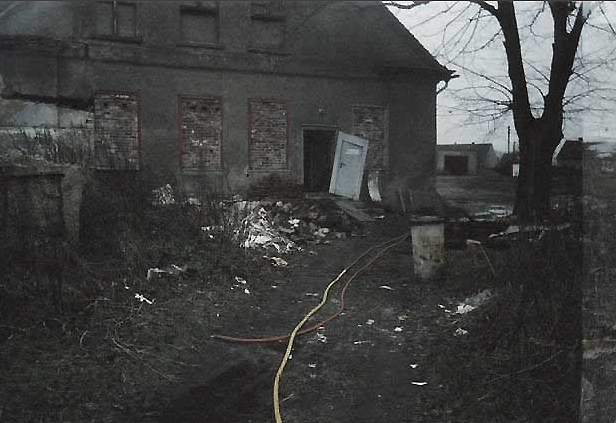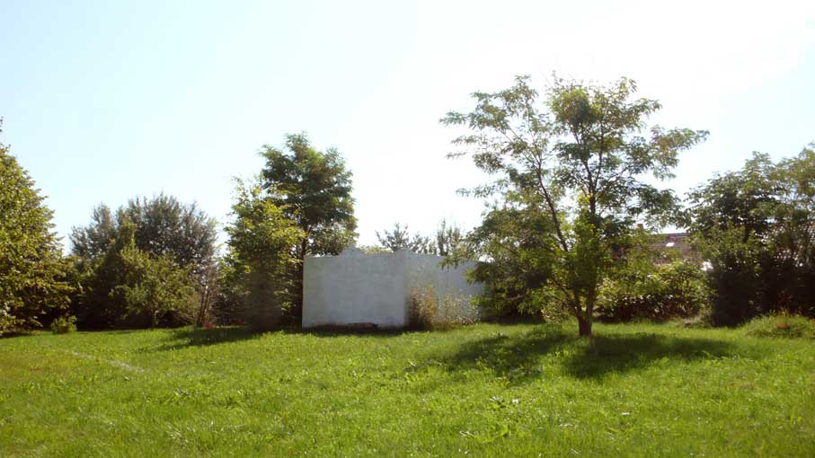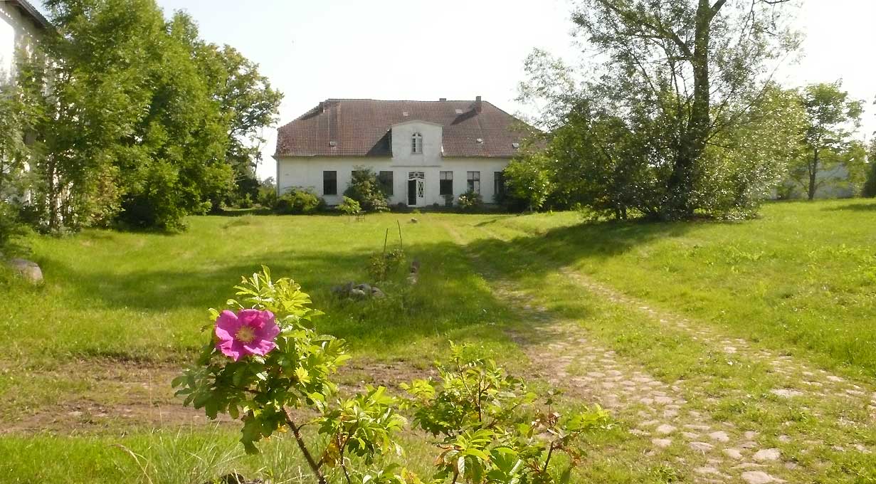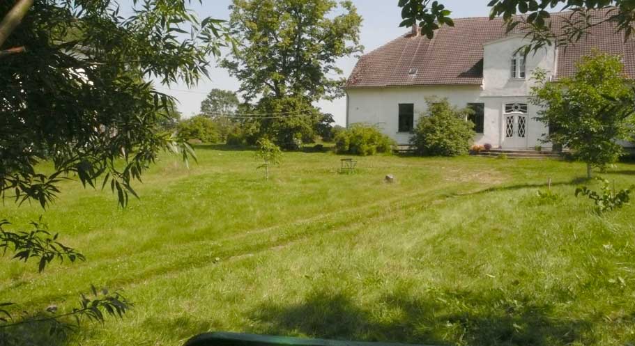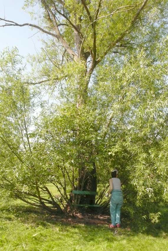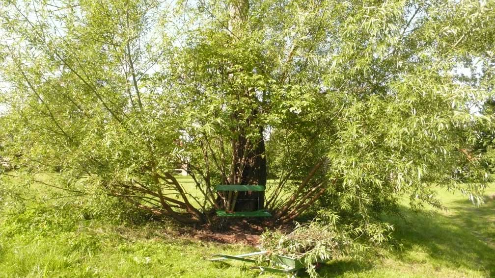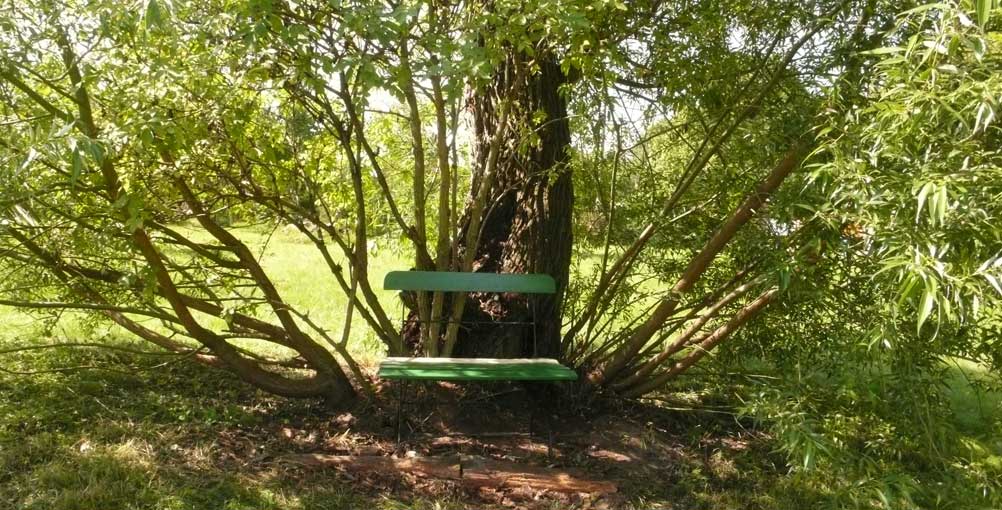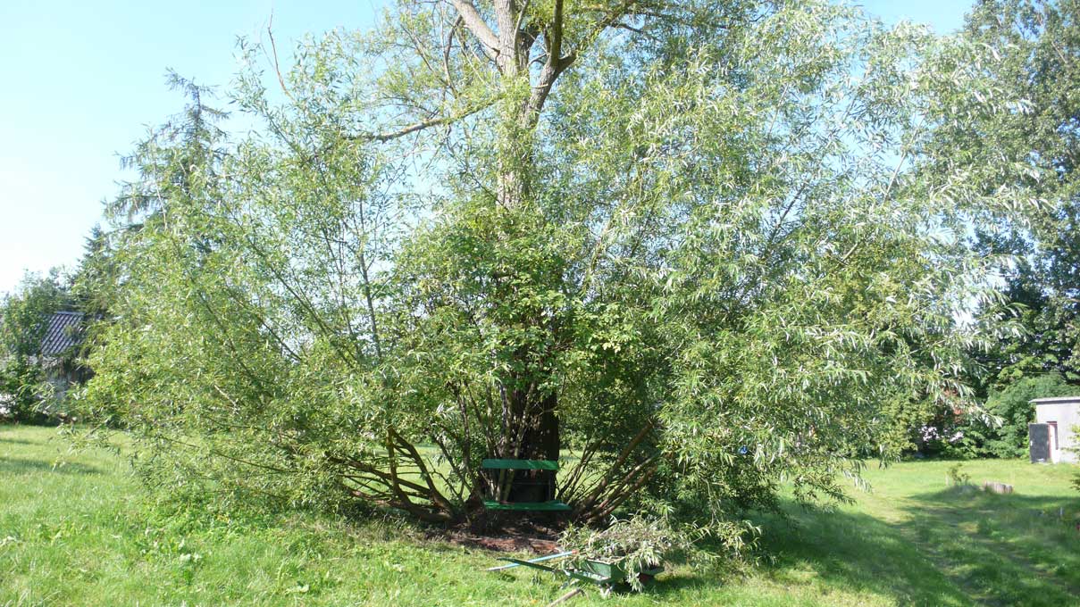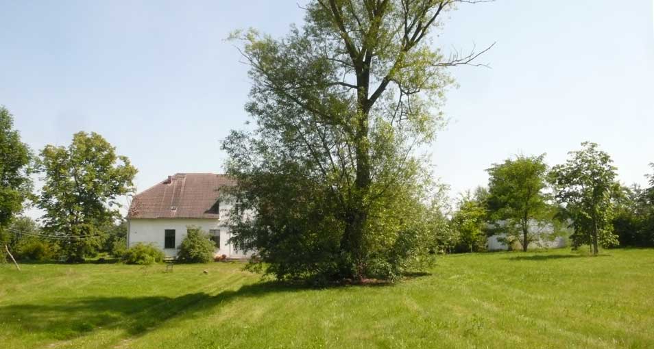 Die Bank unter der Weide n der Mitte des Hofes nun ein Park ohne Ställe, übernommen, wo sonst kein Baum war, von der LPG-Zeit vorher