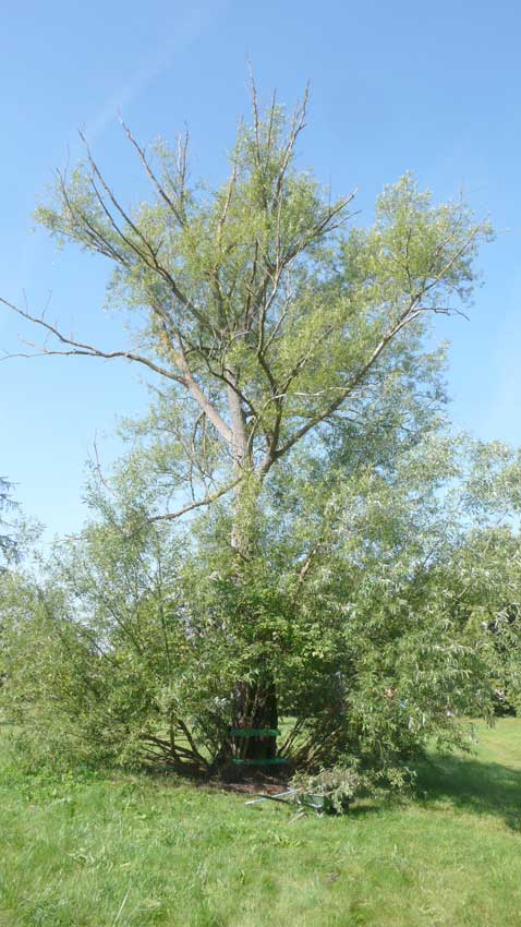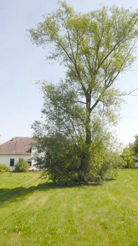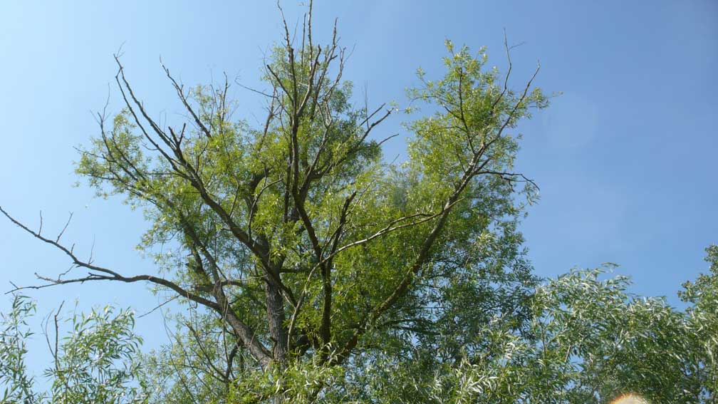 und oben das Sorgenkind des langsamen Sterbens, rätselhaft, denn der Baum ist jung.
