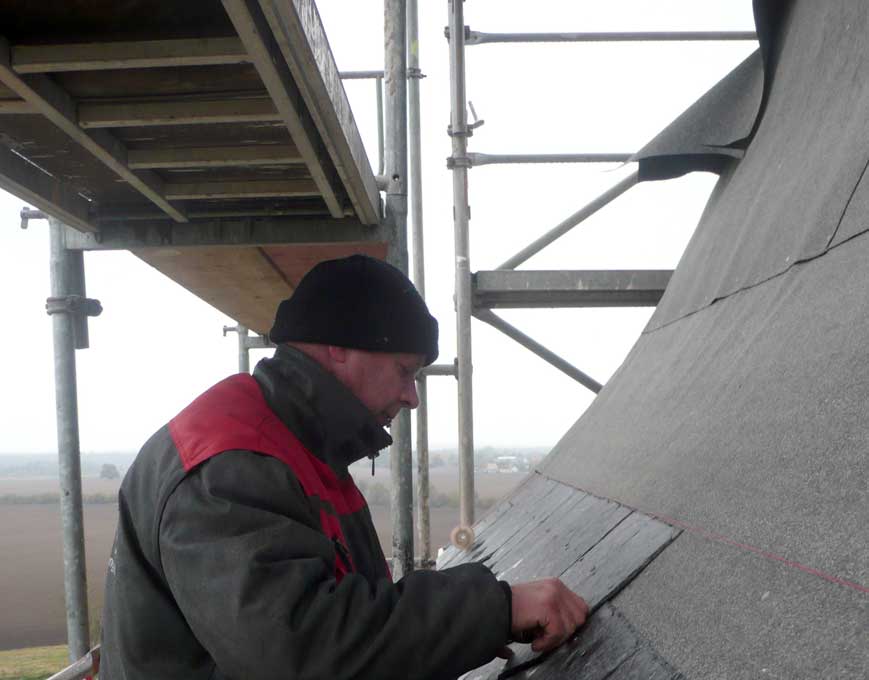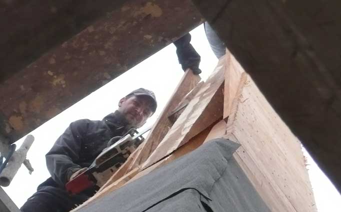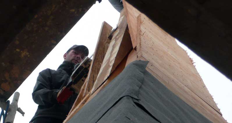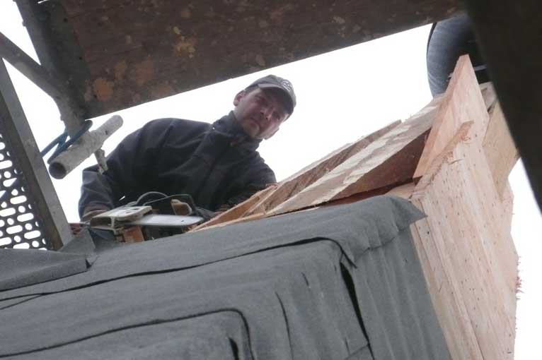 die Dachdecker retten die Ehre der Arbeit am Turm