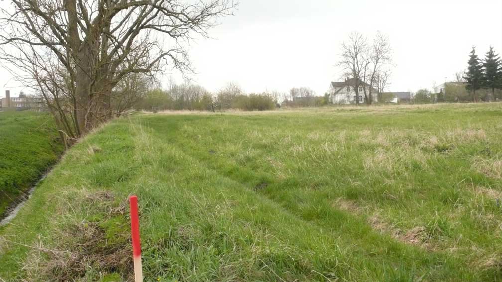 auch sie wollen den alten Graben wieder, weil Wasser in der Garagen, auch bei ihnen, aber er ginge durch ihre Gärten links nach altem Lauf.