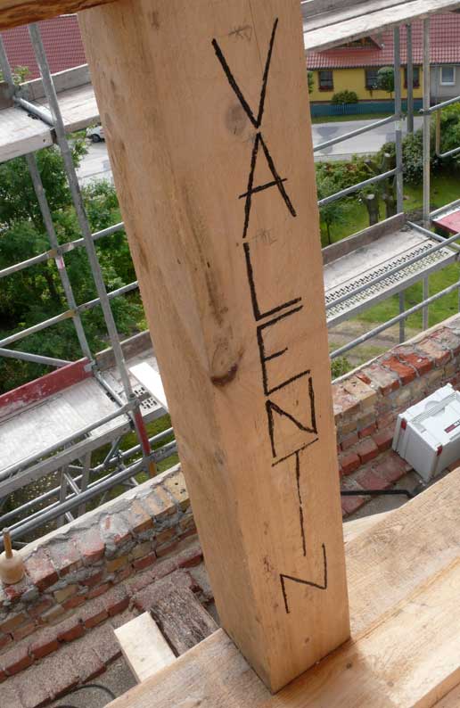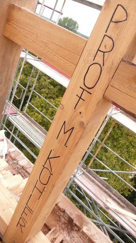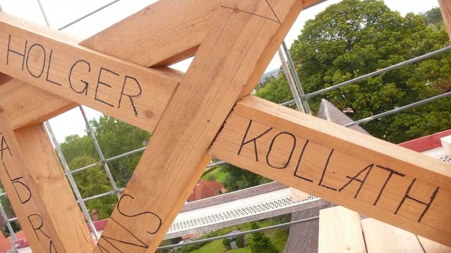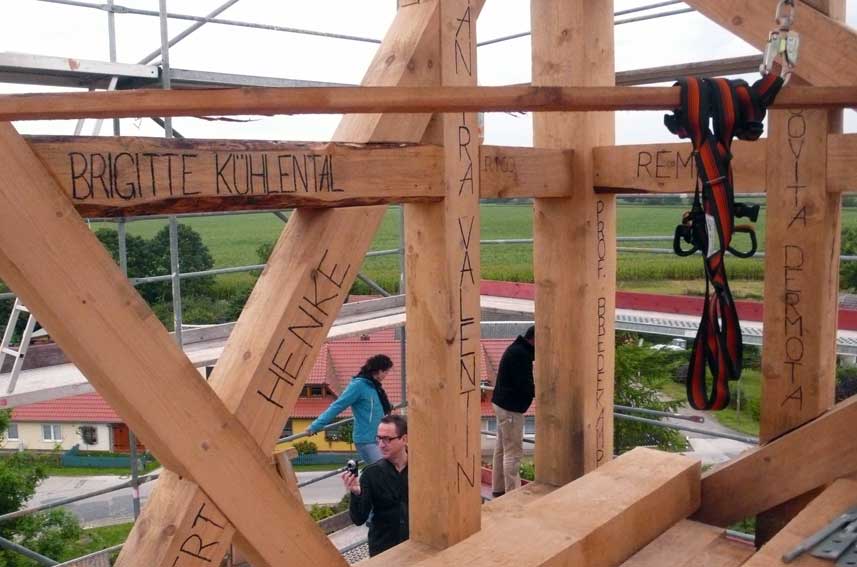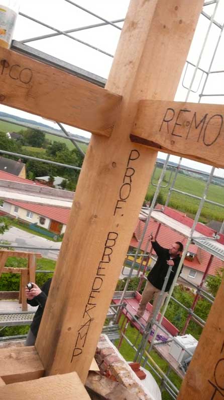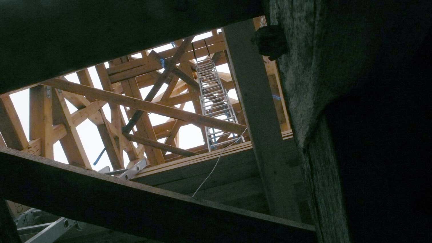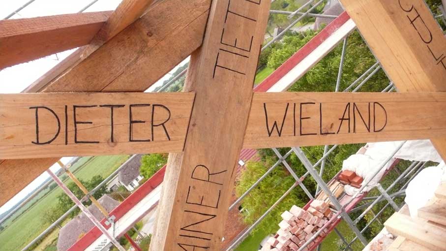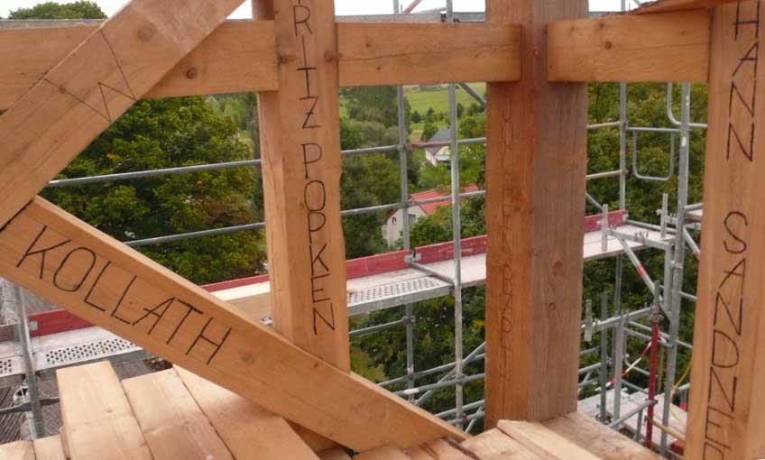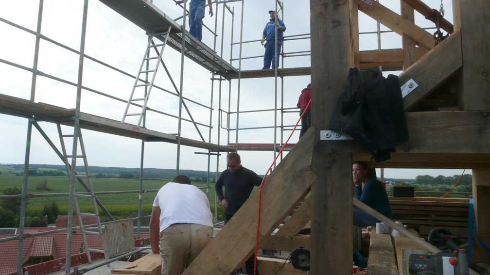 Holzarbeiten oben am Dach