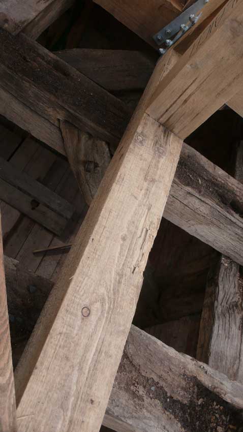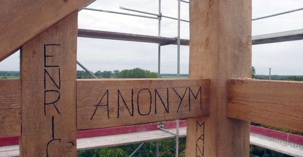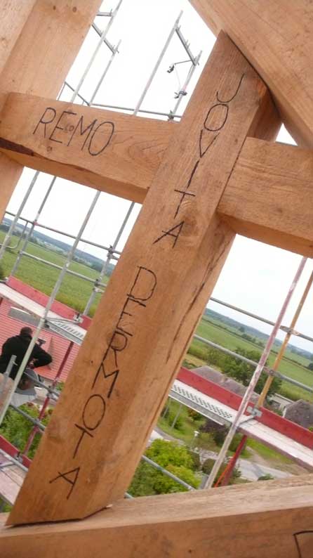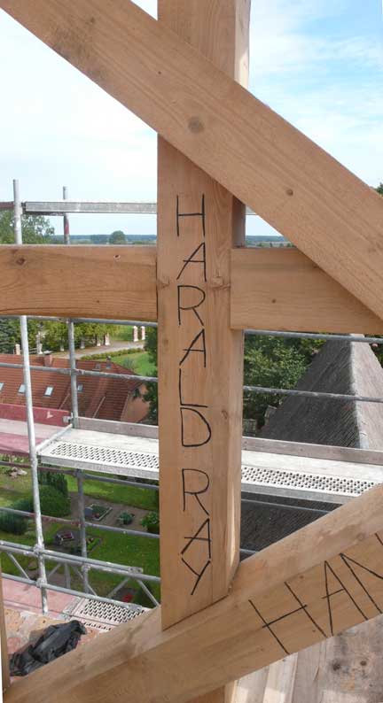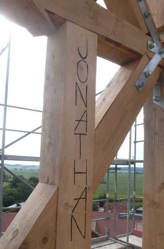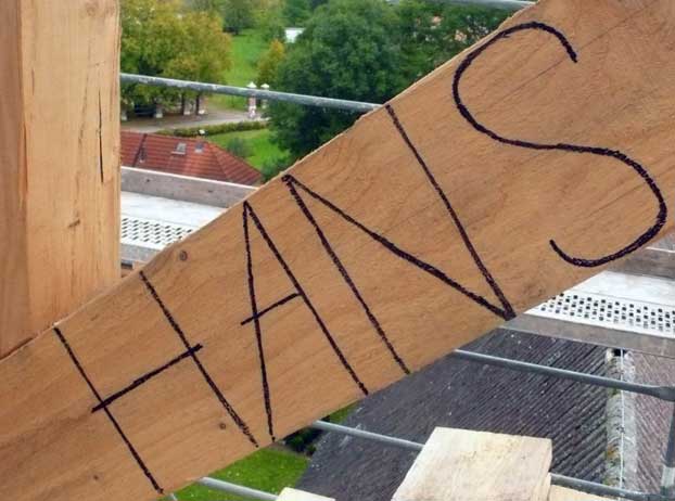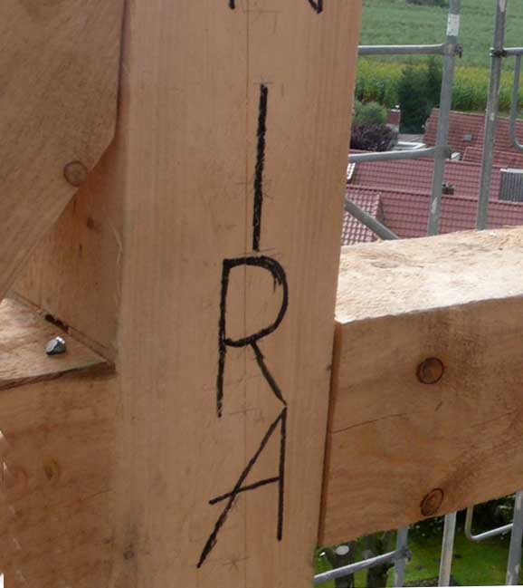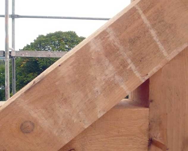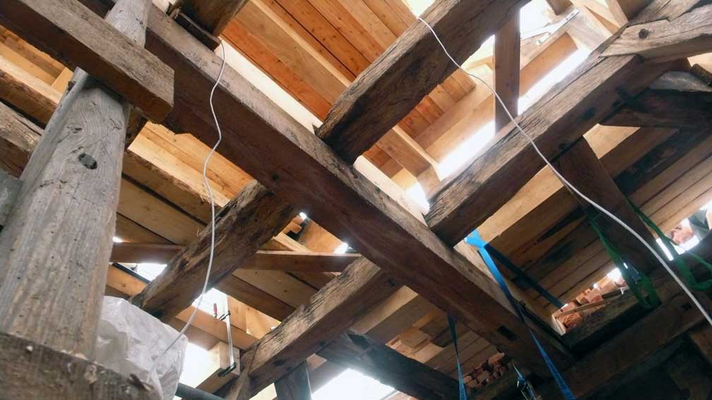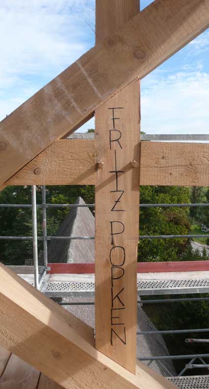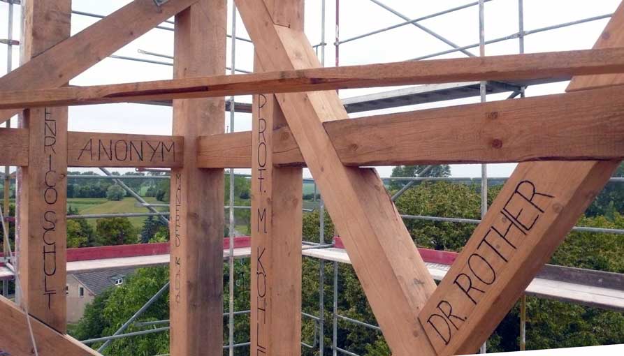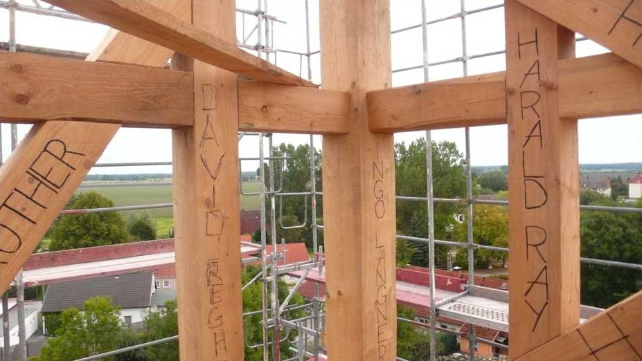 Holzarbeiten oben am Dach