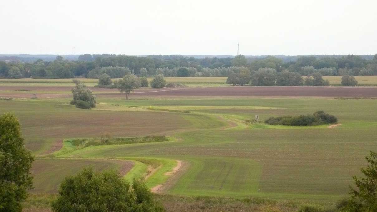 Der Feldweg links vom Graben erkennbar umgepflügt,