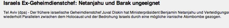 Der Gernalstabstchef von Israel spricht von nur keine Hysterie und eine Atombombe aus Iran ist nicht aktut.