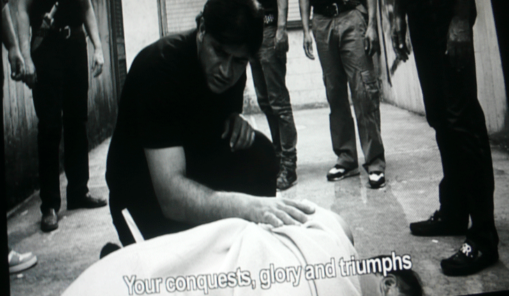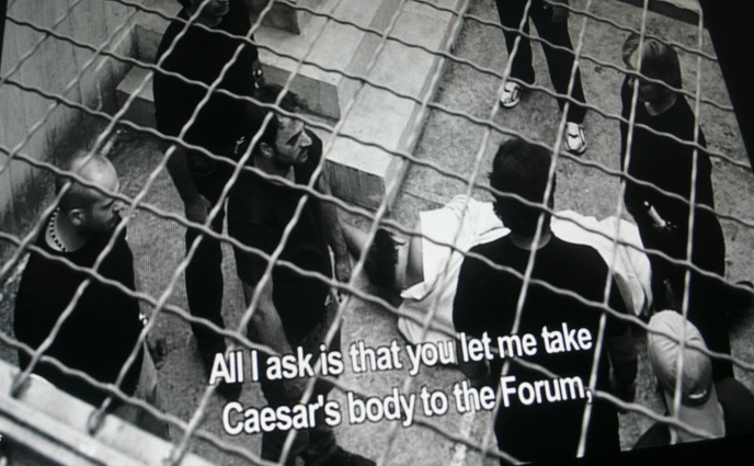 basierend auf einer Theateraufführung dort. Was wir hier nicht hören, sind die verschiednen Dialekte der Sprechenden, aus Neapel, Sizilien, römischer Vorstadt usw. Und immer Shakespeare.