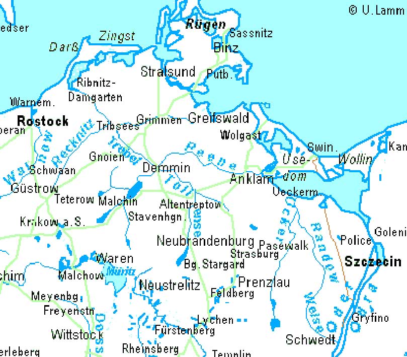 die Trebel im Stdium der Re-Naturalsierung als eiszeitliche Urlandschaft, wie sie in die Peene fliesst(Peenemünde) und sich vorher mit der Tollense vereinigt.