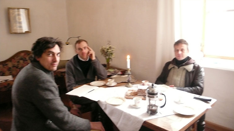 Die Freunde aus Berlin kommen um im grossen Kreis dann den Turm Bau der Kirche zu besprechen. Das wird im grösseren Kreis dann in der Küche sein, Am langen Tisch. Zu den Öfen und Feuern von Hand. Wo es alle Aufmerksamkeit kostete zu verstehen, was nun geschah, dass Bilder von dort vergessen wurden.