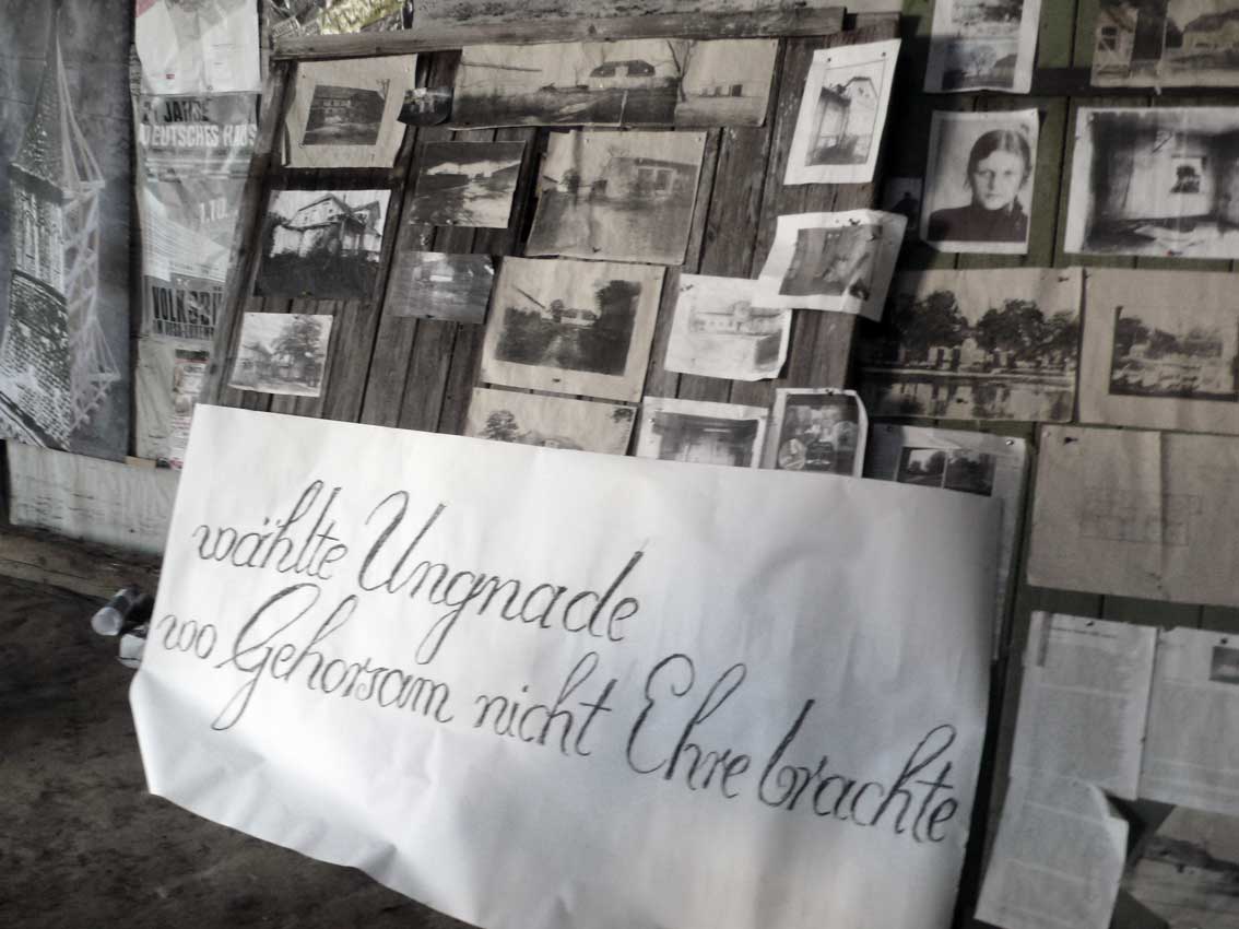 Al ich K. frage, ob er das lesen könne, sagt er nein, Langsam versucht er die unverständlichen Worte