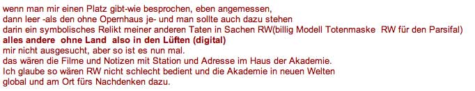 dt. Uraufführung des Parsifal in der Akademie des Künste Berlin west 1982 noch vor Bayreuth dann