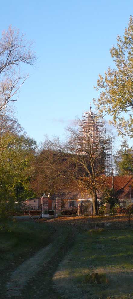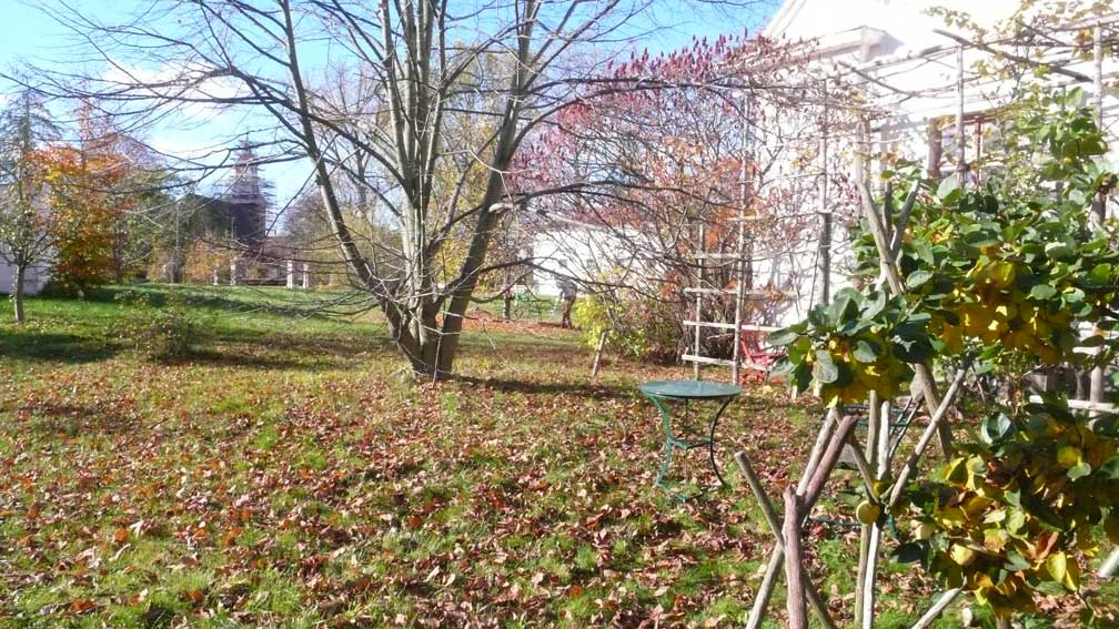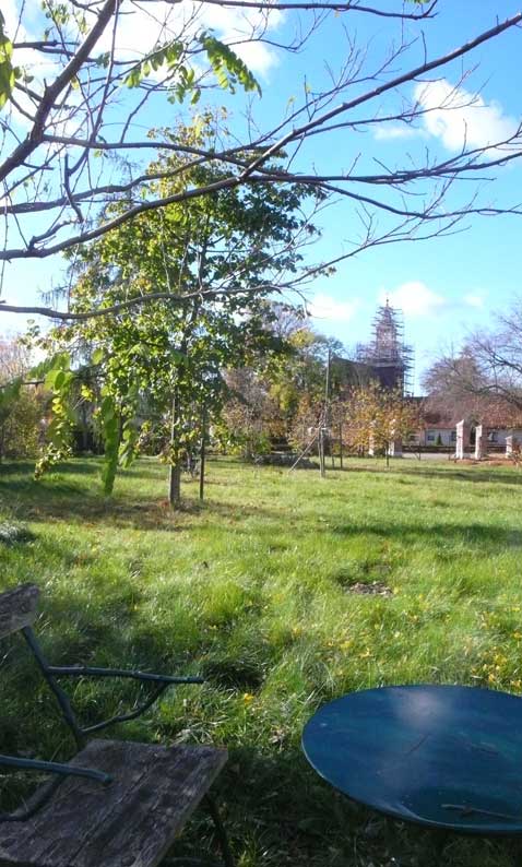 In einer Woche sind die Blätter ab. Und woanders schneit es mit liegenden Schnee. Deer Turm aber wächst uns zu. Über allem.
