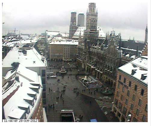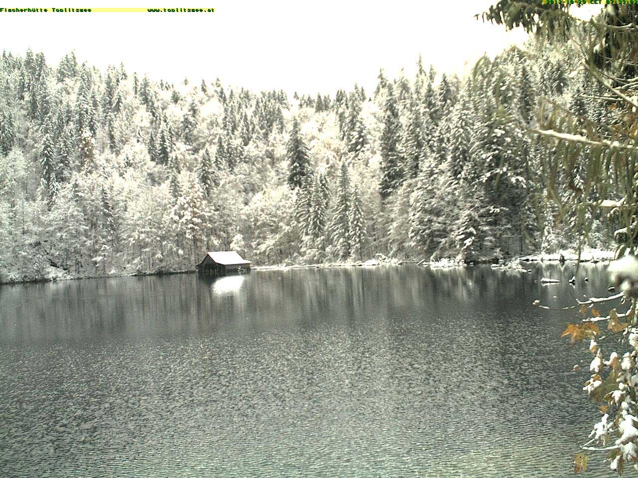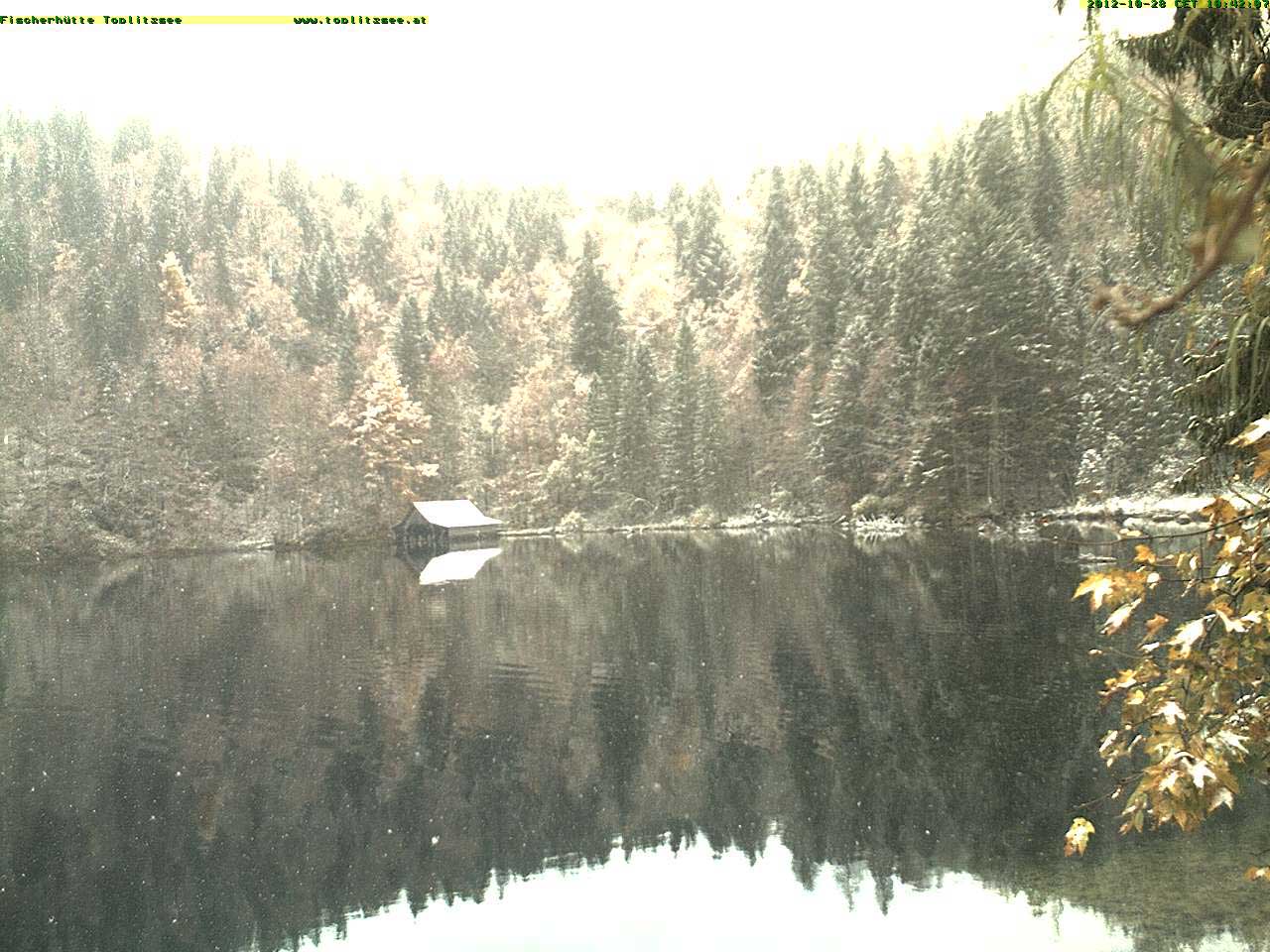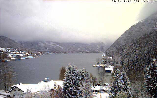 auch in den Bergen der erste Schnee. Über den Blättern noch, den Farben des Herbstes.