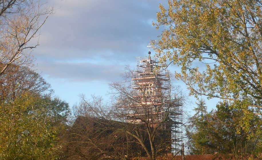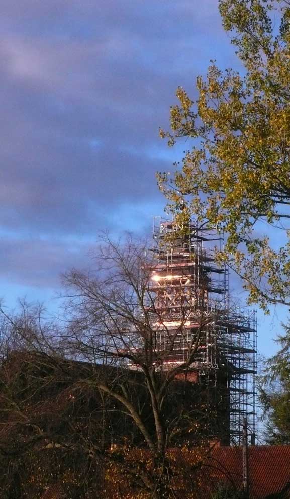 In einer Woche ist auch die Laternen des Turm geschlossen und gibt es Leitern von innen herauf von Innen ihn zu beleben, dass das Gerüst dann wegkann.