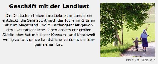 Das Wort Idylle als Verniedlichung des Lebens auf dem Land können nur solche aussprechen, die nie hier waren. Und die nicht wissen, was es heisst hier zu leben.Und warum werden sie wohl nie erfahren.