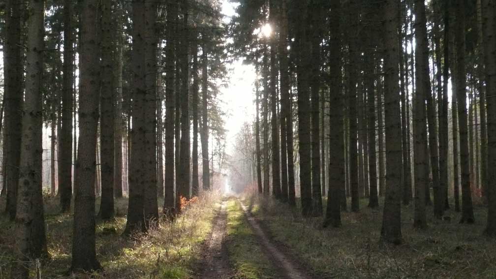Es ist der Wald von Medrow. Dort, wohin wir immer schauen, wenn wir auf der Terasse sind, hinter dem Haus.