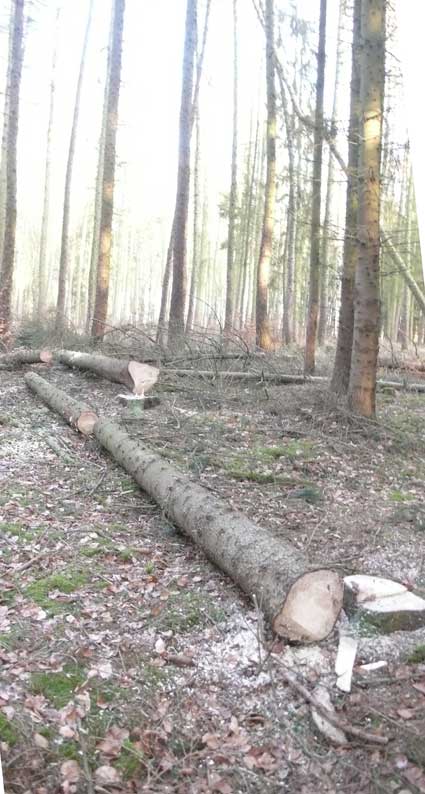 Abfahren wird das Holz der Trecker des Nachbarn von früher und seinen Teil dazugeben, was noch fehlt. Zusammen wirds reichen und geben das Sägen dazu. Dass ein Turm -wieder- wird, was hier wächst