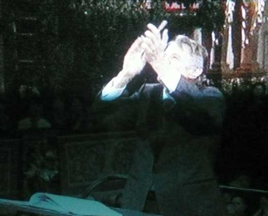 Nach dem aus gedienten Übertragungsroutinier Brion Large von Bayreuth bis NY nun eine neue Reiz-Verkäuferin K.F. Ohne Ruhe und immer auf jeden Effekt hin jagt sie die Kameras über die Köpfe aus allen Winkeln, als Zulieferung für eine spekulative Zeit der Ausbeutung letzter Resourcen, der Tourismusästhetik unserer Geschichte ein beliebter Zuwachs. Rolex presents stand am Schluss aller Leute die da mitgewirkt. Auch die Tourismus-Loby ist schon Teil des Ganzen. Und alle Lächeln, teilweise resigniert. Solange die Töne noch stimmen. Aber alles ist gefährdet, die Bilder schon sind verdorben in unseren Hirnen.