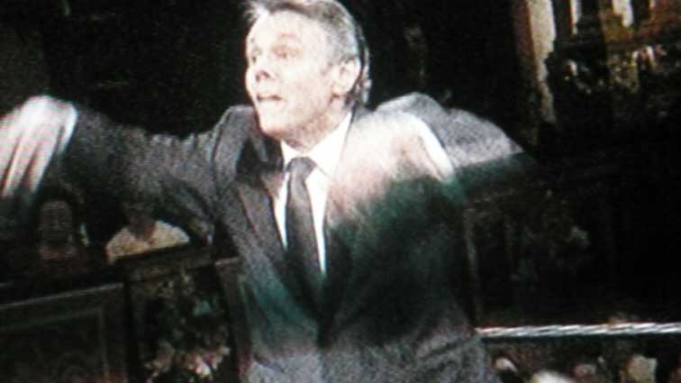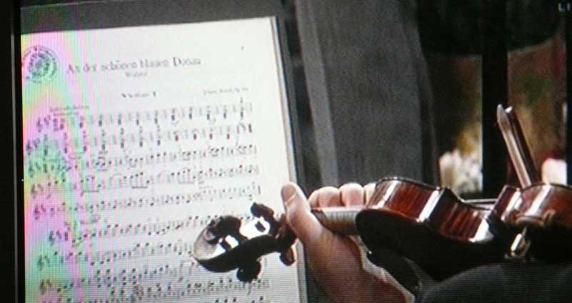 Diese Einstellung mit der Geigen von hinten z.B. hatte die Chance dem Blick des Musikers vom Notenblatt zum Dirigenten zu folgen und zu verstehen, was da vorgeht und entsteht in der Herstellung von Tönen zwischen einem und allen. Indem es uns die Technik ermöglicht statt zu verspielen. Diese falsche Verwendung der guten Dinge unserer Zeit ist ein Zeichen wie die neuen Chancen falsch laufen überall, wenn sie in die Hände der falschen Leute geraten.