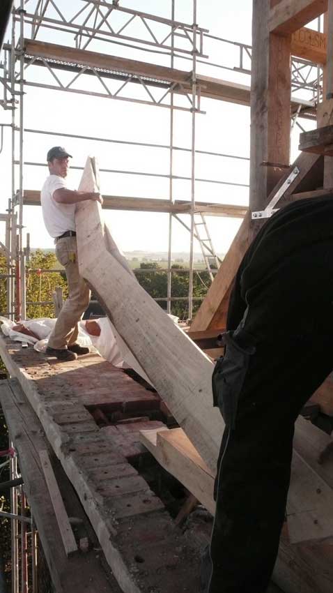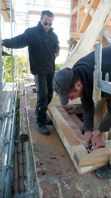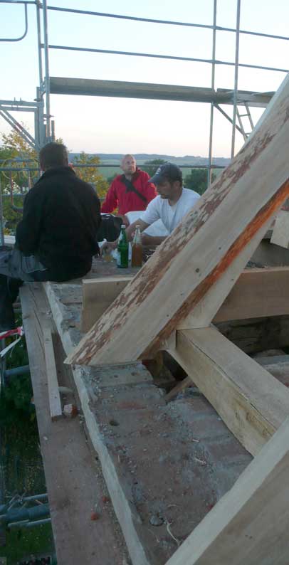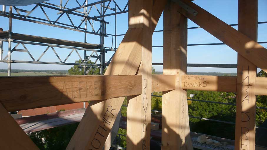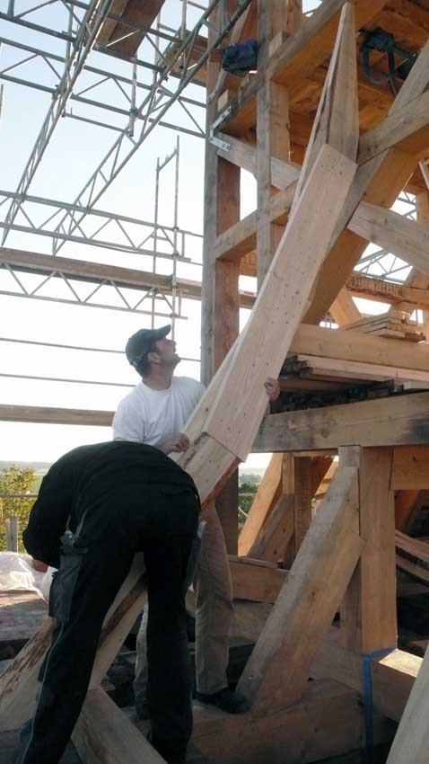 Die Arbeit an den Aufschieblingen auf dem Turm