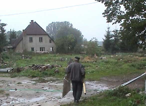 er musste lernen das Holz auch der verbrannten Treppe noch zu verwenden und ich, wie das geht. Früher wars der Stellmacher Jatzeck, dem ich beim Bau der Räder und Wagen zuschaute, nun dem Alfred treuester Handlanger.