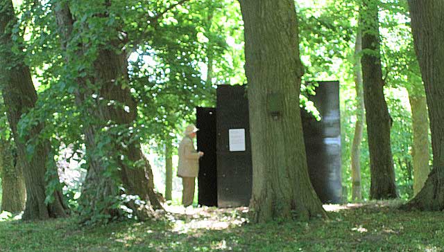 Alle schwarzen Boxen im Park von Kunst offen entstanden aus diesen Hütten der Hühner in Marihn, Bresse-Hühner aus Frankreich. So soll es sein erfindungsreich und die Idee erfüllend.