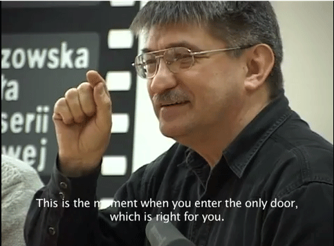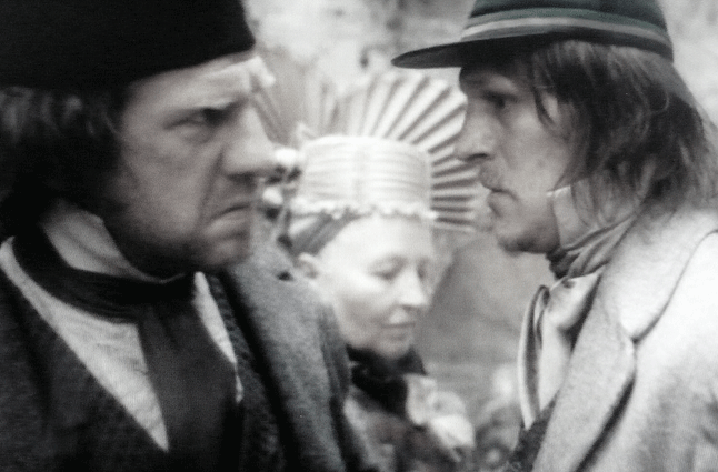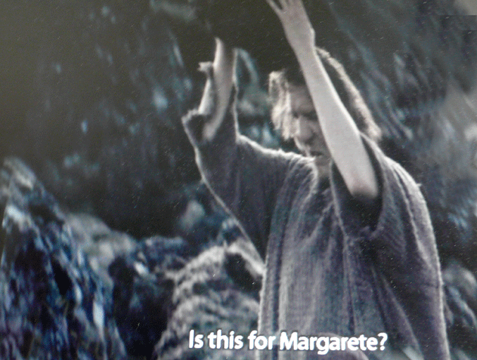 Dieser Faust -in deutscher Besetzung, wie die Mutter des Teufels!(H.Schygulla)- zieht dann mit diesem Mephisto auf dem Rücken, und der hier Maurizo Müller(ein "Wucherere")heisst "in s Gebirge", wo er mit Worten des Faust II von Goethe sich des Mephisto entledigen wird. Und wie, das ist nicht von Goethe . Aber wohl ein solcher Moment von dem S. spricht, wenn er von der offenen Tür spricht künstlerischer Verantwortung und Erkennens.