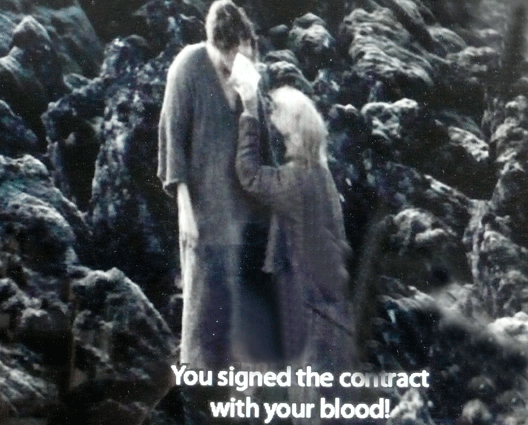 Davor aber geschieht der Mord am Mephisto bei Sokurov, indem Faust ihn grausam steinigt.