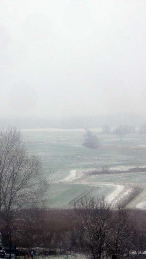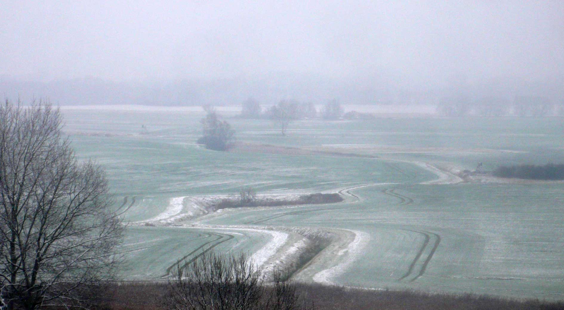 am eiszetlichen Graben und wenn sie ihn unterpflügen, links die weisse Spur, dann suchen sich Fahrzeuge in der Saat ihre neuen. links und rechts. Natur die zu Klutus strebt.