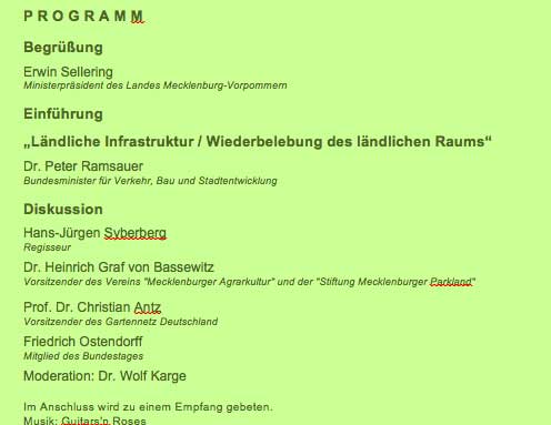 Und, wenn wir Nossendorf als Zentrum verstehen, neuer Energien im Umfeld als kulturelle Landschaft, auch im erweiterte Bereich der Trebellandschaft, wird man ein Eventmanagement suchen müssen.