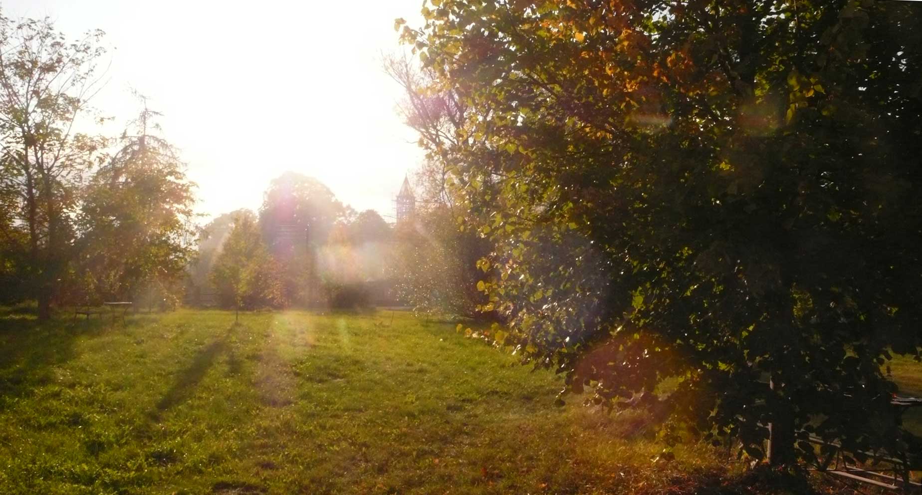 Wege, Bäume, Turm.