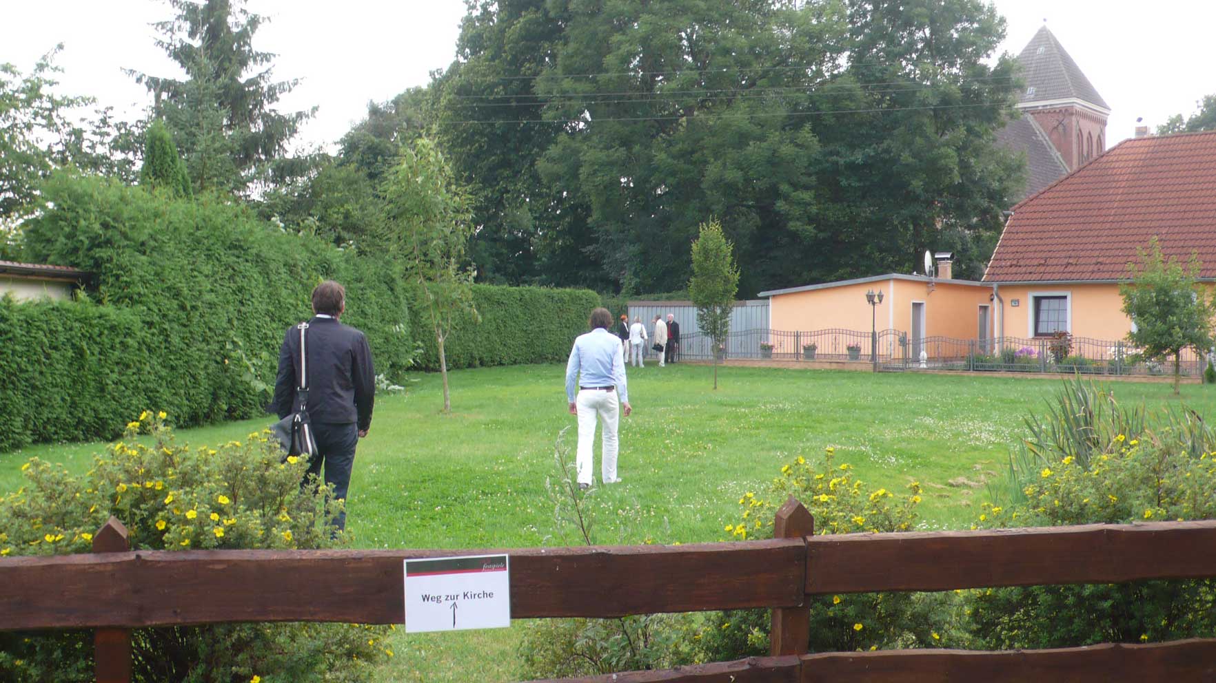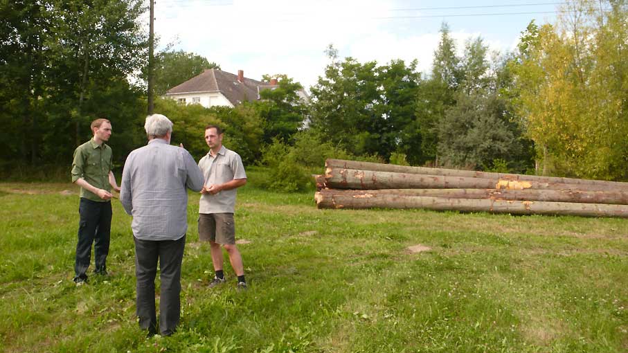Auch Jochen Barth der beherzte Spender des Holzes aus Nossendorf unter der Kirche aufgewachsen, wo jetzt die Zäune den Weg versperren