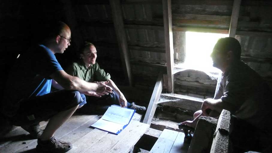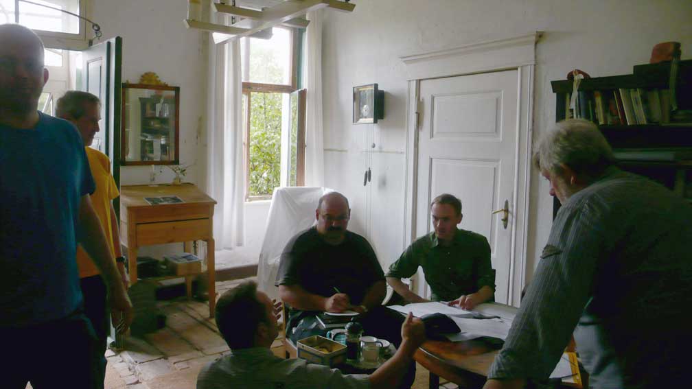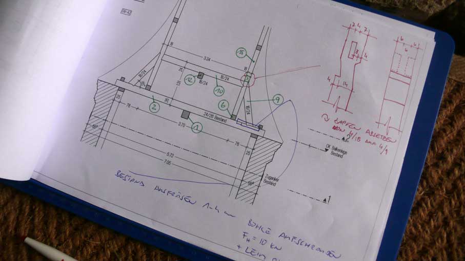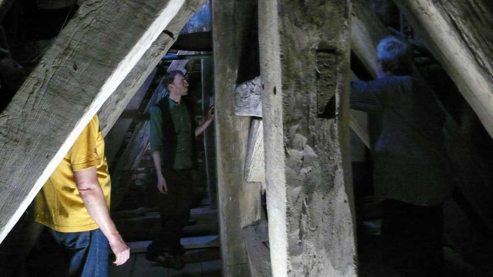 nun auch der Holzsachverständige für alte Befunde dabei und die Archtekt und Pastor R.