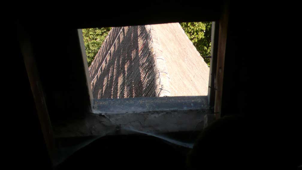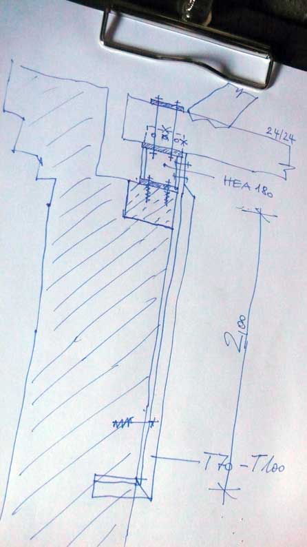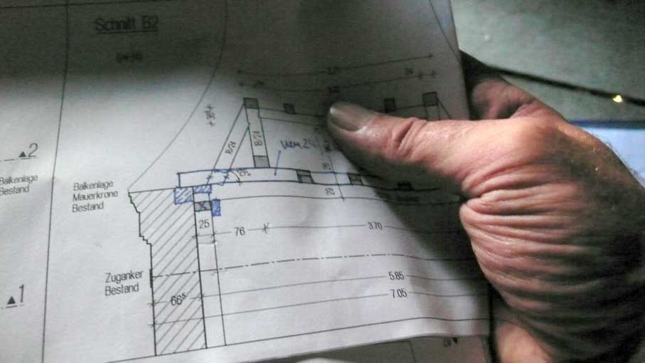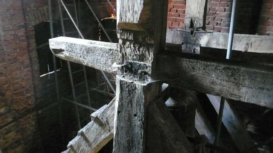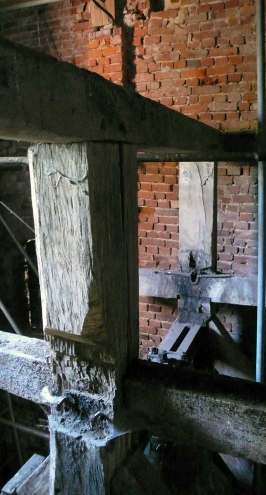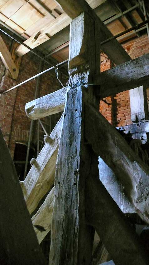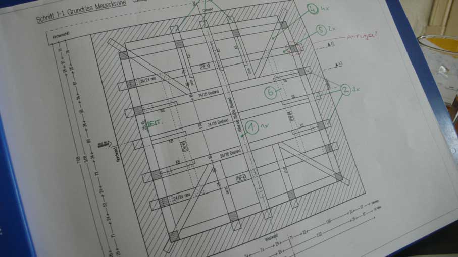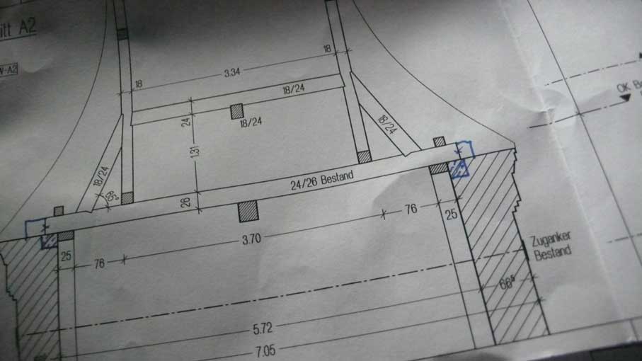 Das alte Gebälk wir d nicht ragen, also ein Stahlgerüst eingezogen werden auf dem der neue Turmaufsatz nach unten verankert wird.