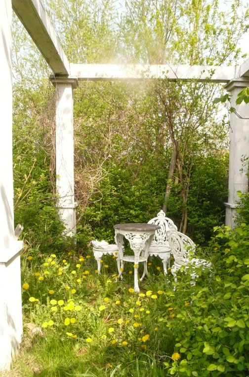 Rosen werden den Blick aus dem Tor auf die Zäune auf dem Weg zur Kirche mildern