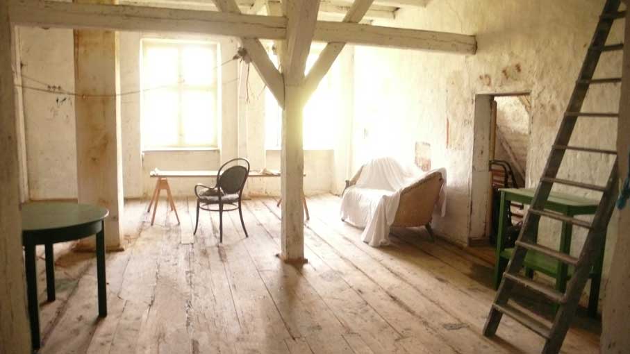 Dieser Raum des Hauses -der Trockenboden- blieb von Veränderungen unberührt. Dorrt hatte sich der Handwerker Weinhold aus Memel seine Werkstatt eingerichtet. Zu gross war seine Achtung vor der Arbeit der Kollegen von früher.