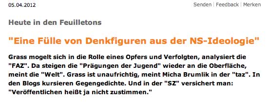 Die Reaktionen auf diese Zeilen von Grass in den Medien erzeugen bei mir Gänsehaut.