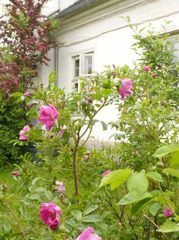 Einmal im Jahr, darin gleicht es dem Leben, ist die Fülle so, dass man nur rumgehen kann, sie zu pflücken. Alles Grün in Blättern, die Farben der Blüten, immer neuen Formen, etwas leiten, fördern, zurücknehmen, sie werden es danken, von allen Seiten und festhalten lassen. Und die Mühen nicht zu vergessen und die Koordinaten, dass es ist. Anders als einfaches Wuchern, ein kultureller Organismus wird, auch im Elend und Glück des Entstehens.