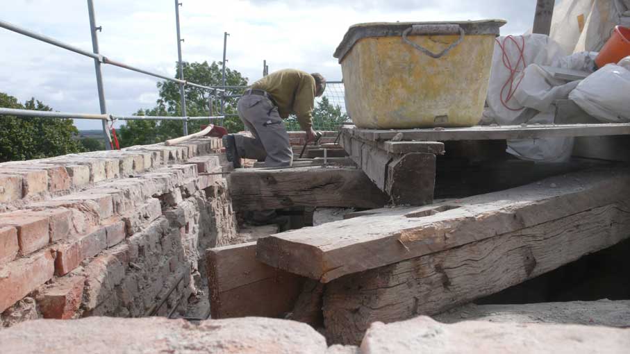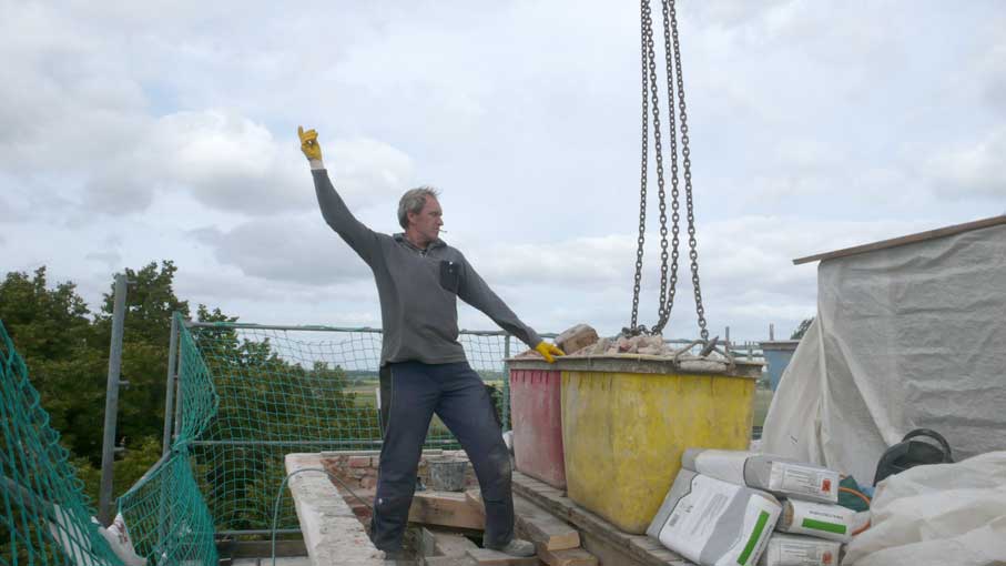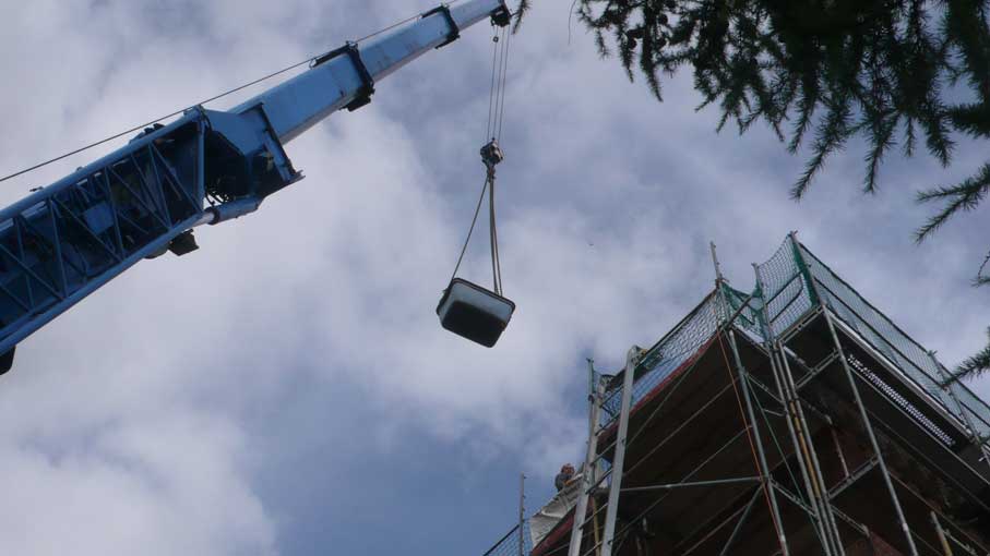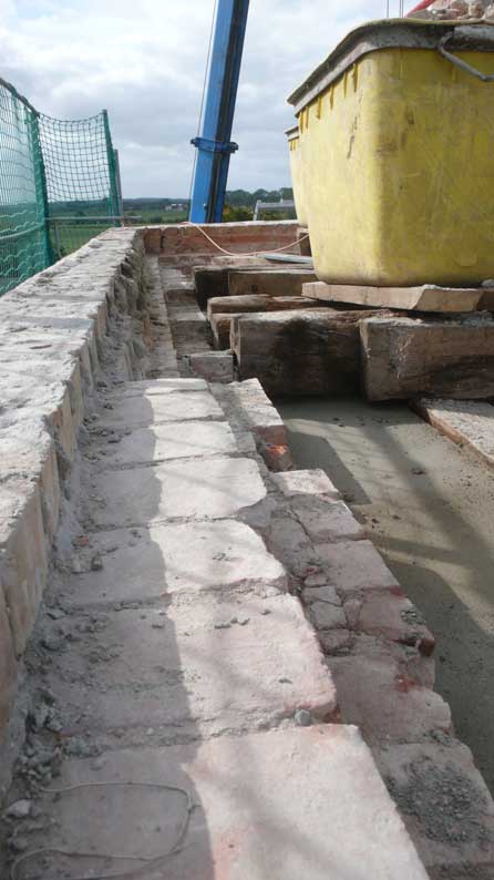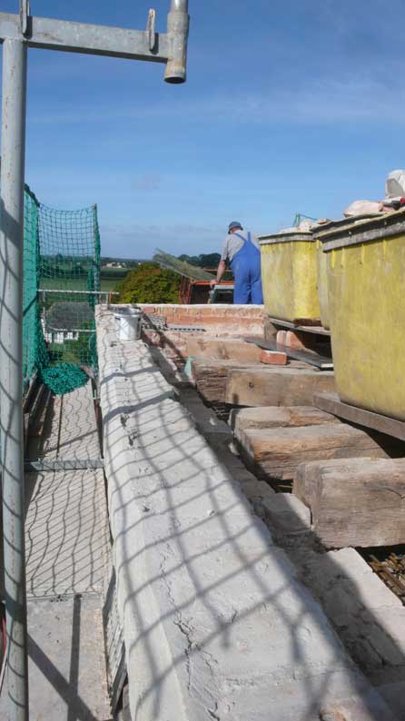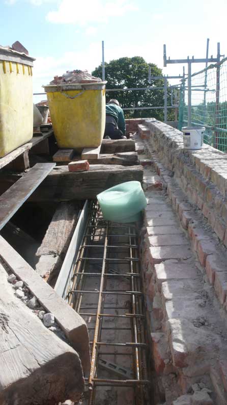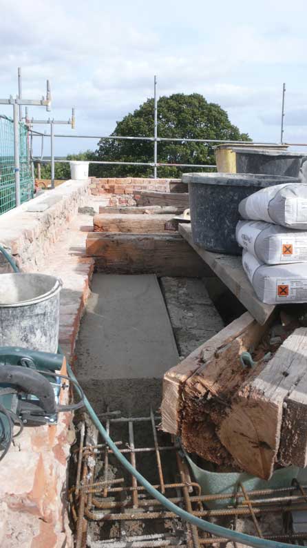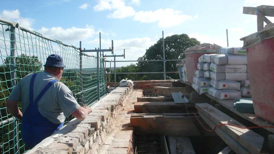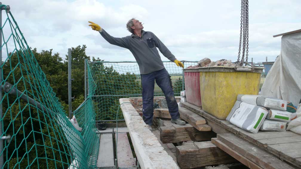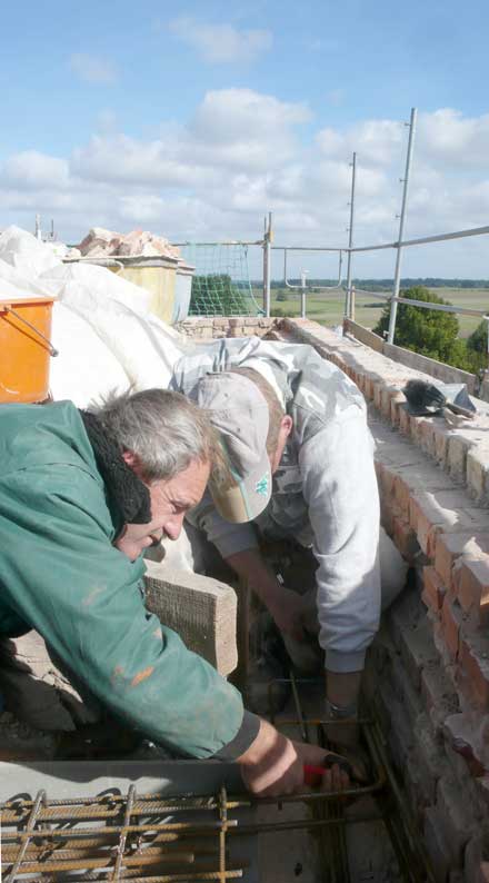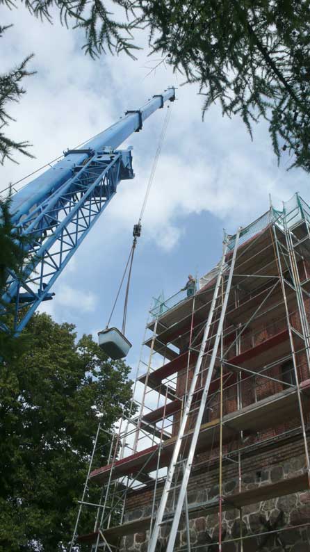 endlich fliesst Beton in den ins alte Gemäumer eingeschlagenen Ring-Anker. Sonst kein Turm.