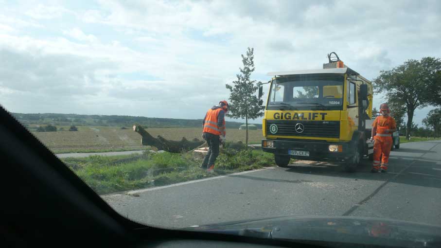 die jährlichen Fällaktionen an den Alleen ohne Hilfe dem Alten und das Umweltamt immer dabei.