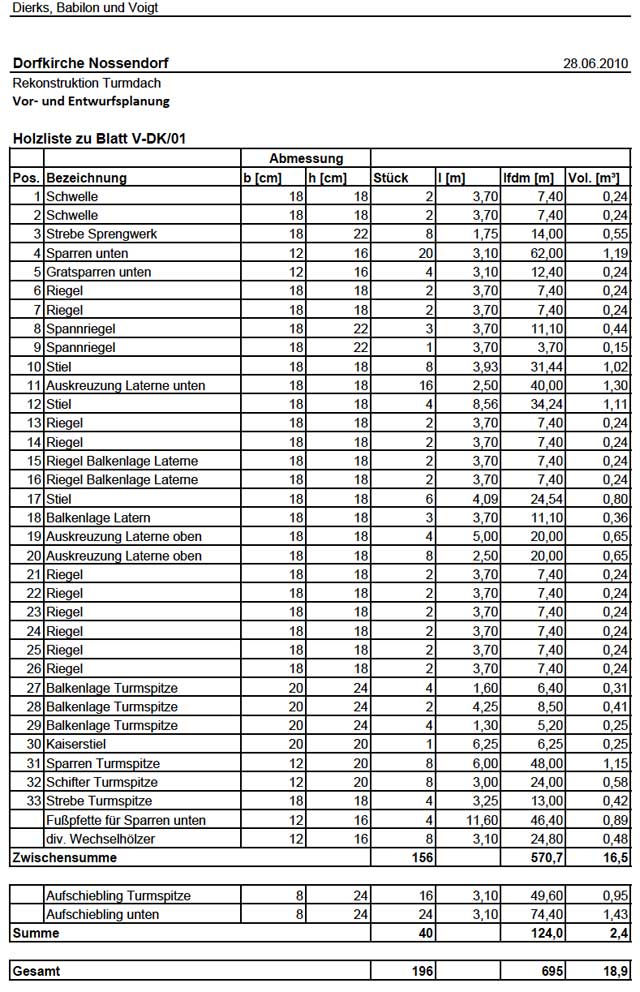 Die Liste des Statikers enthält, dass was man nichts sieht vom Holz desTurms am Ende, weil es nicht trägt.