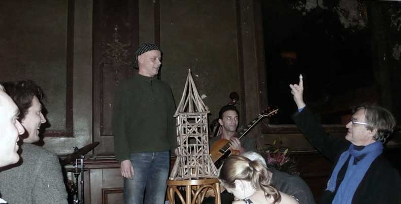 Dieser Bericht des aktiven Bauvorgangs dokumentiert und begleitet die Phasen, wie der Wald zum Holz und von Balken und Brettern zum Turm wurde und wie das Dorf sich neu findet. So auch den Beginn von den Büchern zu den Bühnen des Theaters und aus dem Film zur Tat. Kunst die nicht Tat wird, ist keine. Taten ohne Kunst im Sinn, werden keine Kultur. Was ist der Mensch ohne Kultur. Die Kultur aber seiner Andachtsorte ist ihm höchste Natur Und noch etwas hitler hats genommen und hitler hats ermöglicht. Dazwischen liegen Enteignung der Geschichte und Bereicherung durch einen Film, durch das hier möglich wurde. Man könnte auch sagen Schuld und Heilung durch die Form, entsühnt.